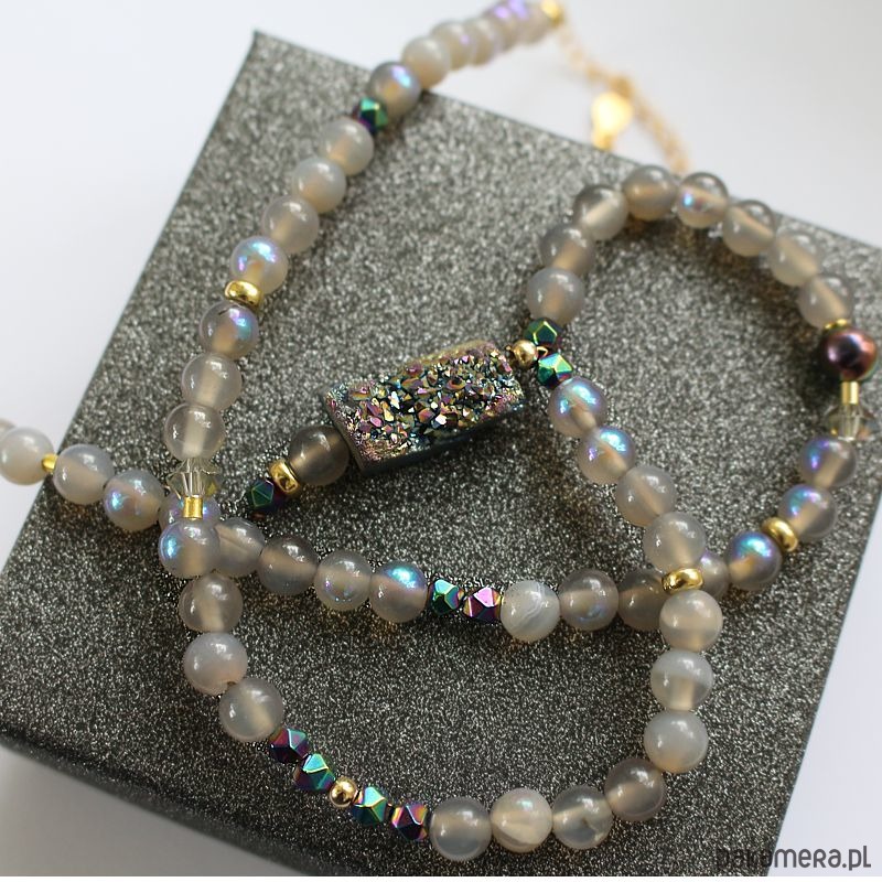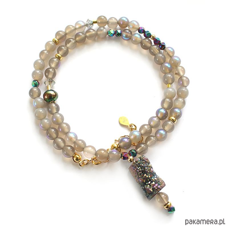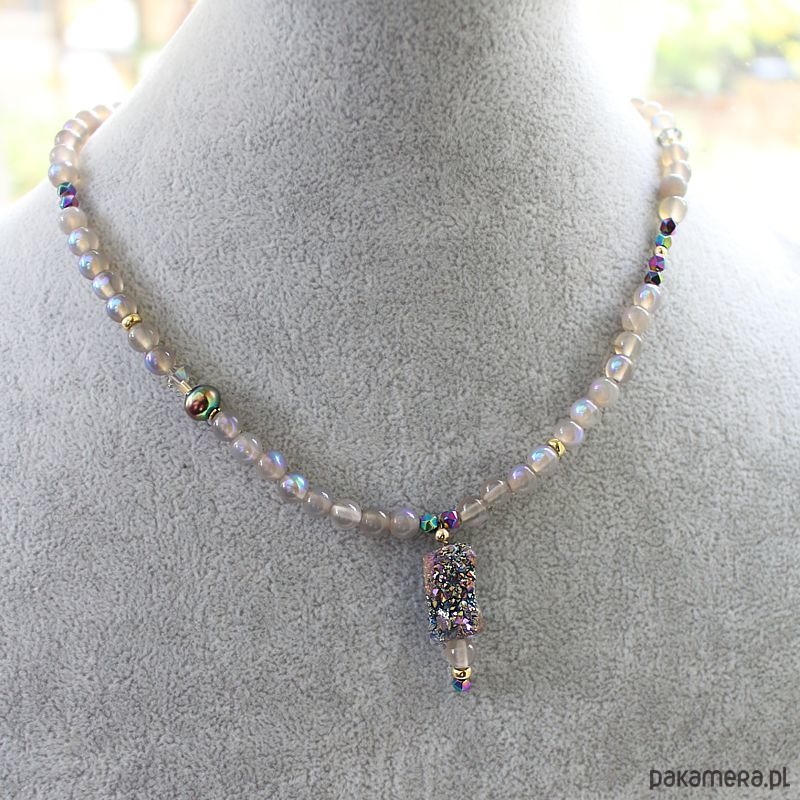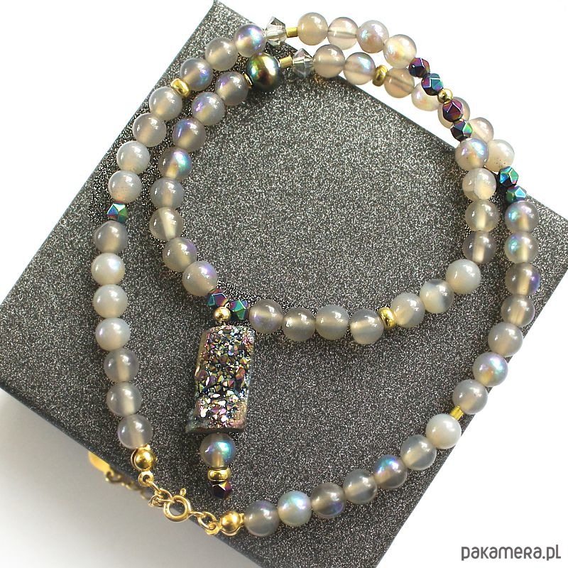 Unikatowy Naszyjnik z druzą Aura kwarc i szarym agatem
