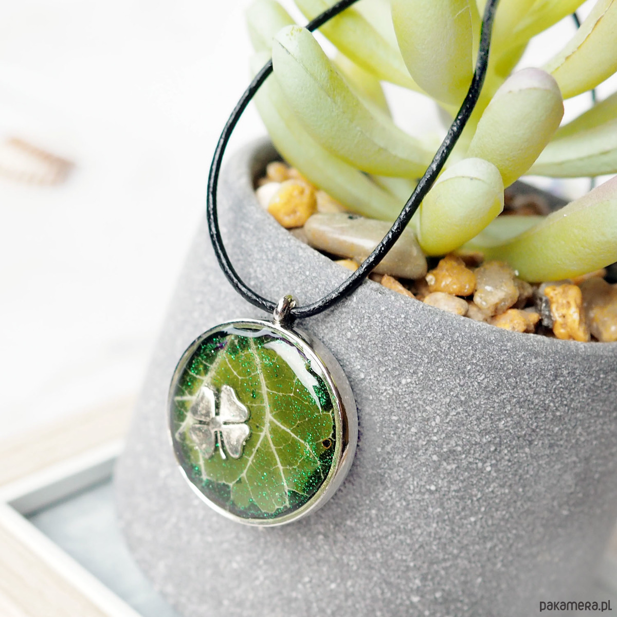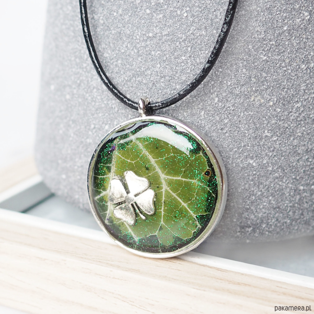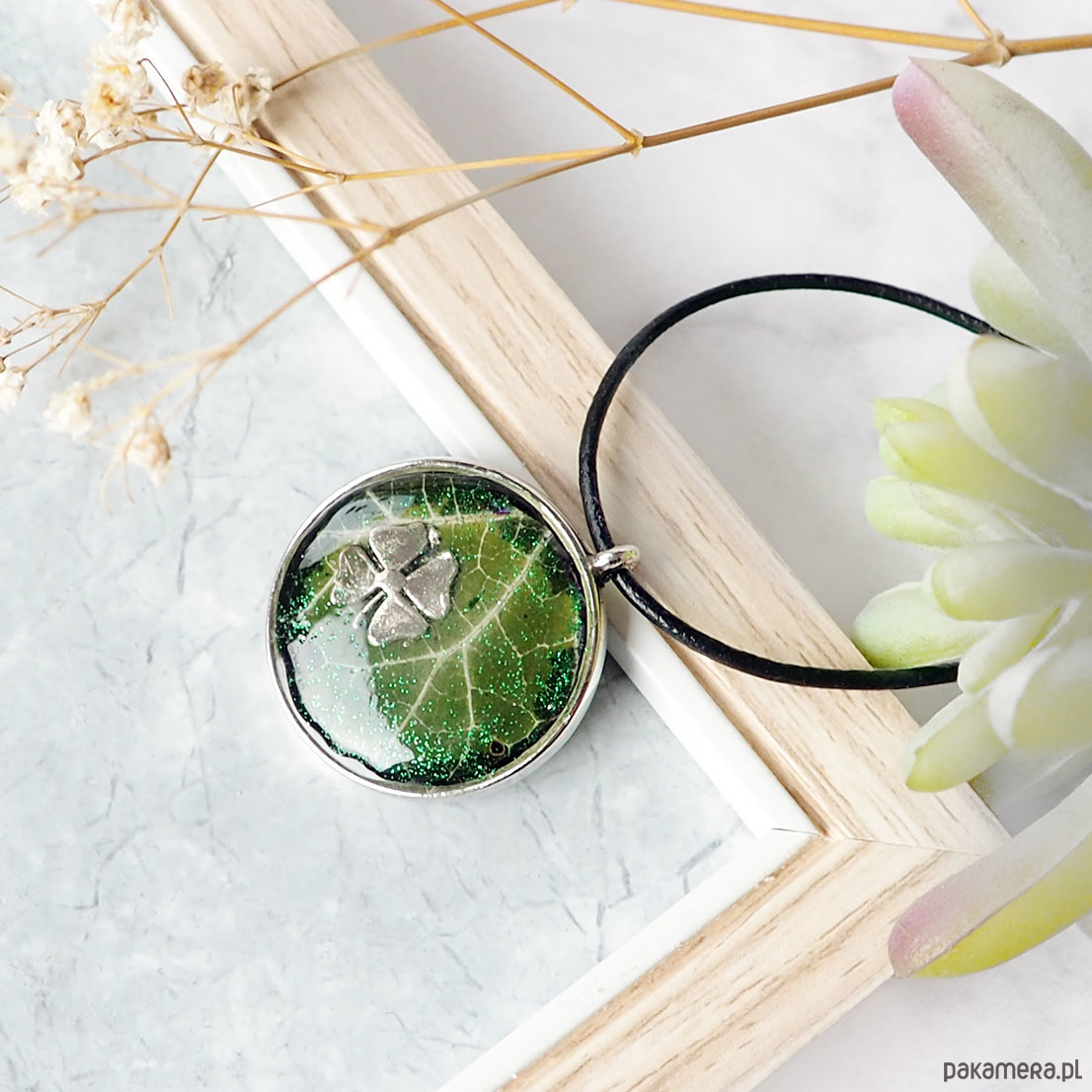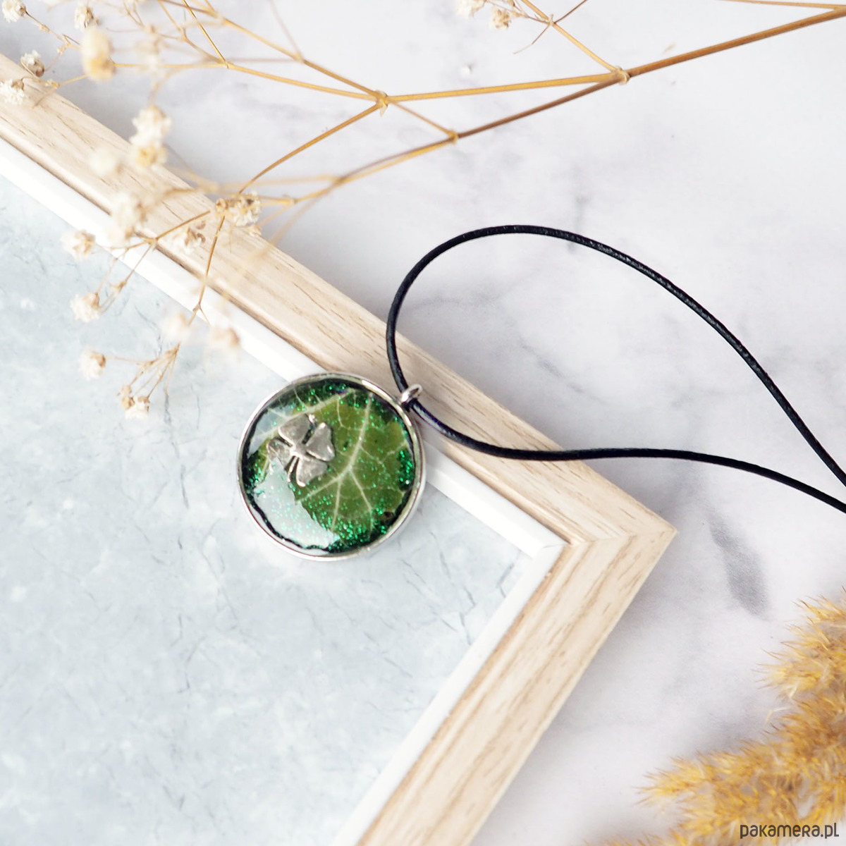UNIKATOWY NASZYJNIK Z SUSZONYM LIŚCIEM W ŻYWICY, idealny na prezent