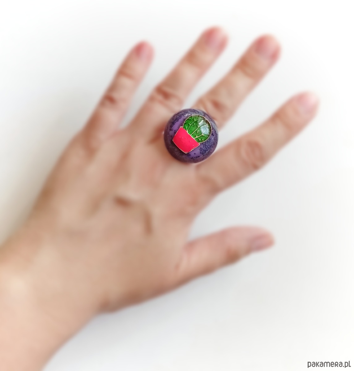 UNIKATOWY pierścień z żywicy : KAKTUS : fiolet, róż, zieleń