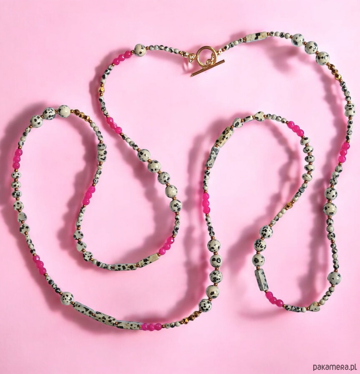 UNIKATOWY sznur kamieni 120cm : naszyjnik : jaspis i jadeit fuksja