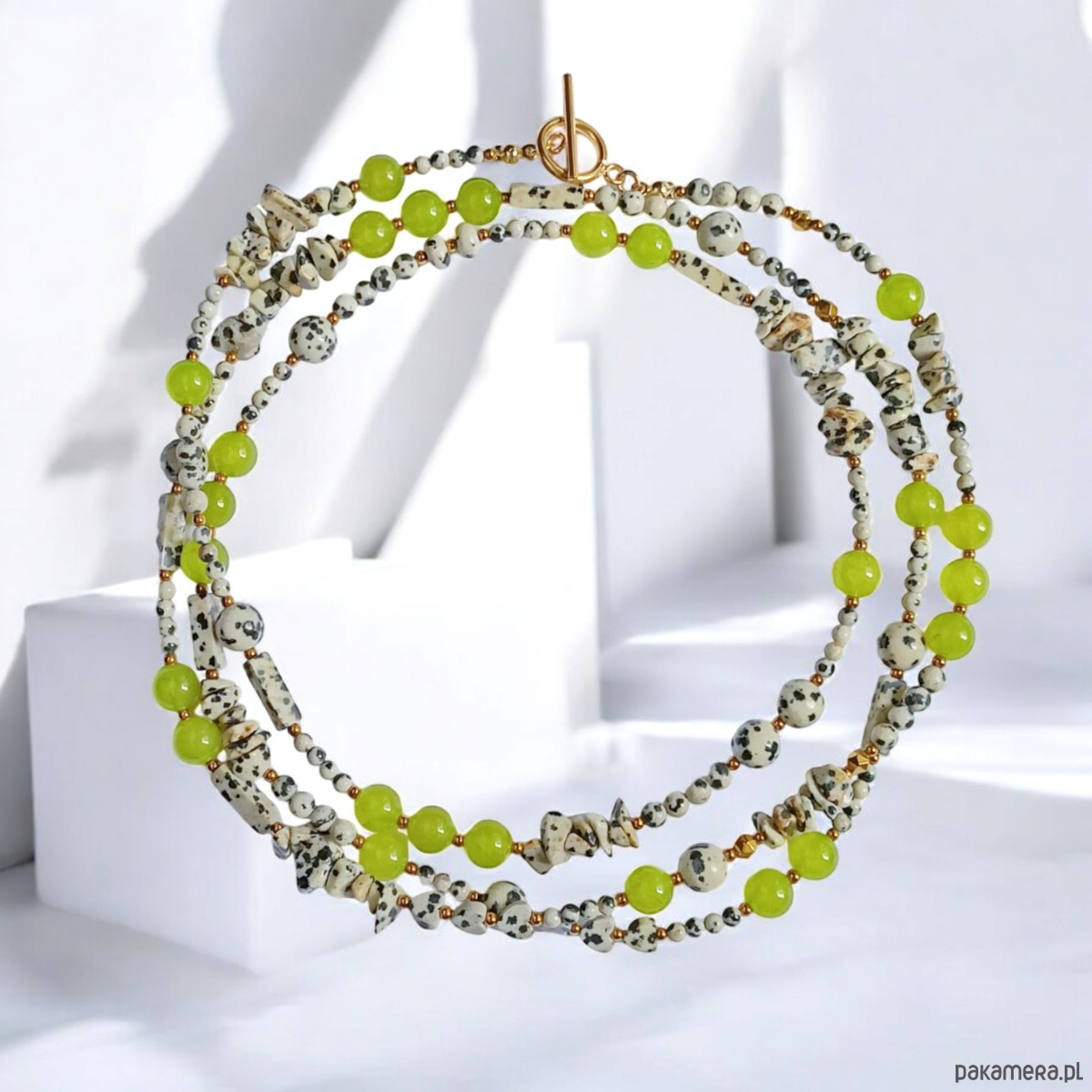 UNIKATOWY sznur kamieni 120cm : naszyjnik : jaspis i jadeit LIMONKA
