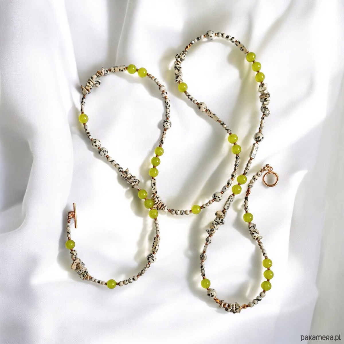 UNIKATOWY sznur kamieni 120cm : naszyjnik : jaspis i jadeit LIMONKA