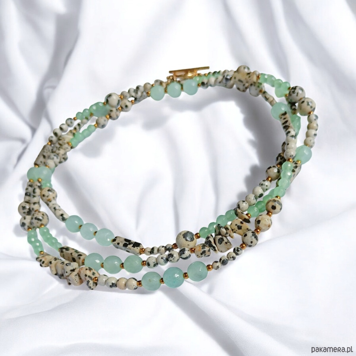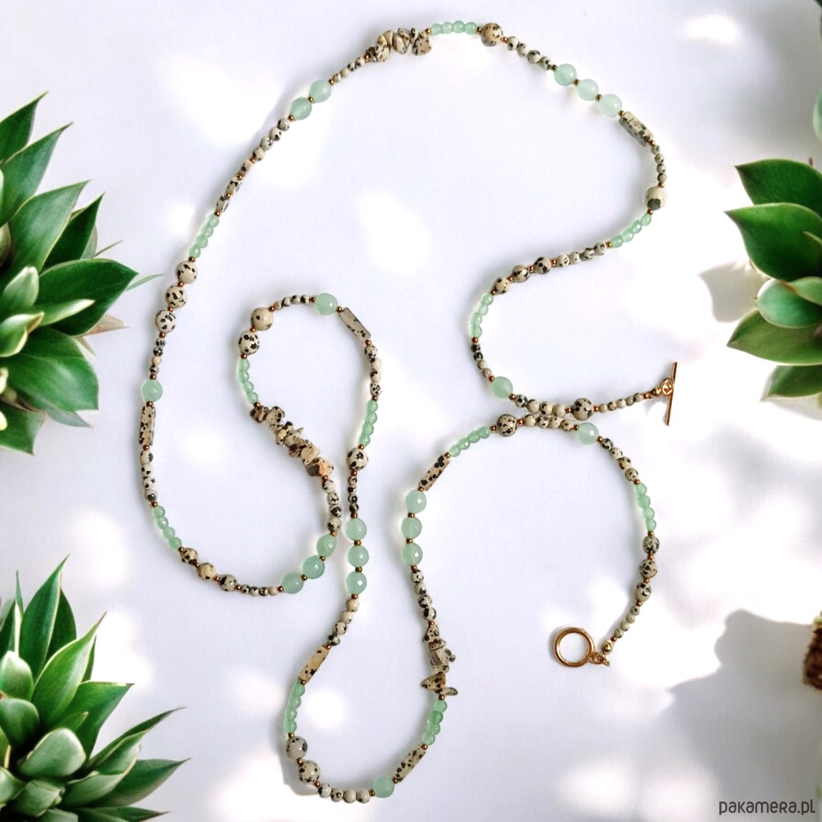 UNIKATOWY sznur kamieni 120cm : naszyjnik : jaspis i pastelowa zieleń