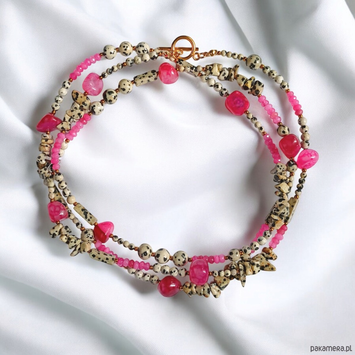 UNIKATOWY sznur kamieni 120cm : naszyjnik : jaspis i róż