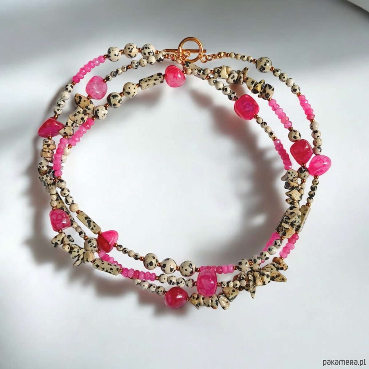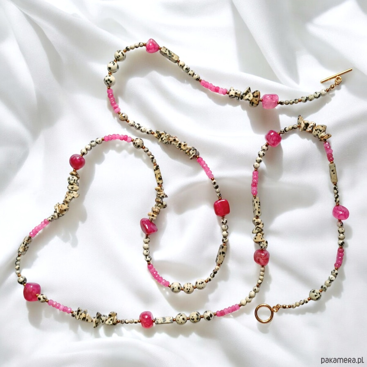 UNIKATOWY sznur kamieni 120cm : naszyjnik :: jaspis i róż