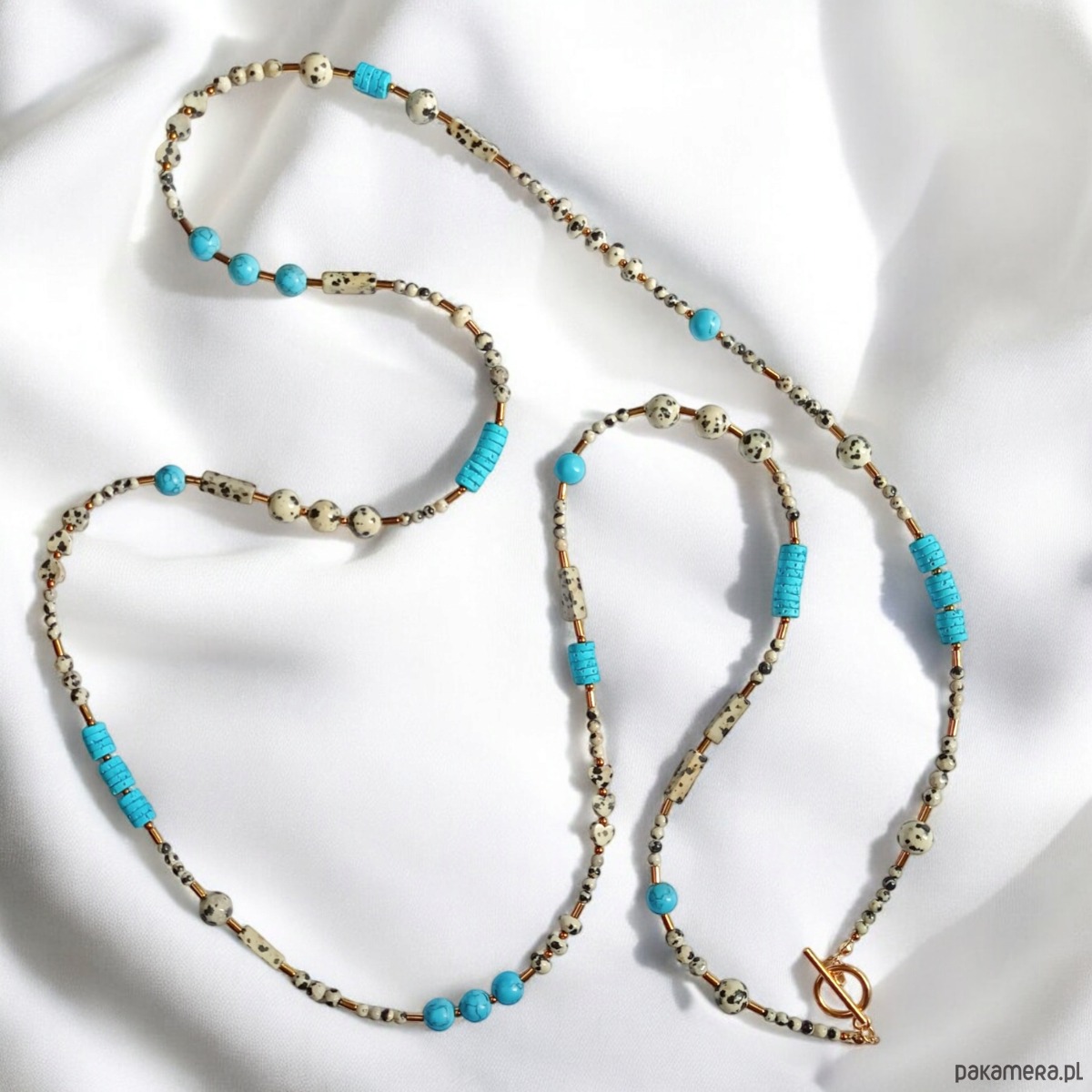 UNIKATOWY sznur kamieni 120cm : naszyjnik : jaspis i turkus