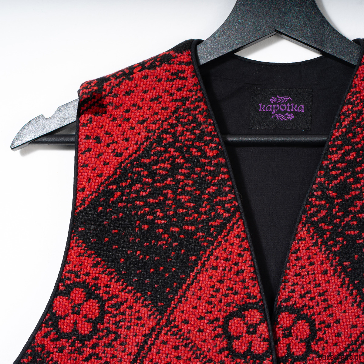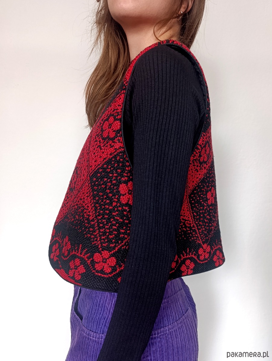 Upcyclingowa kamizelka z ludowej tkaniny