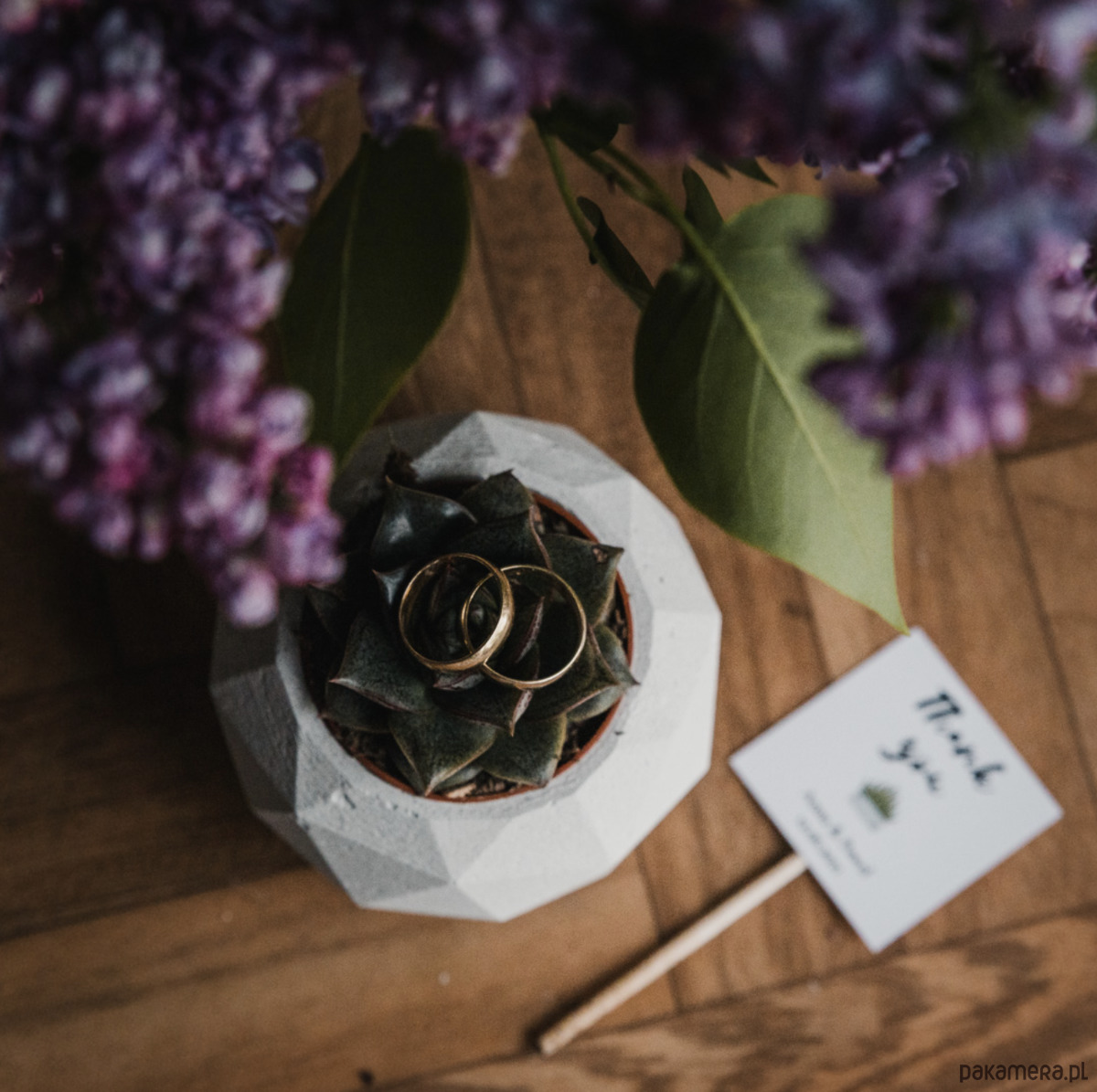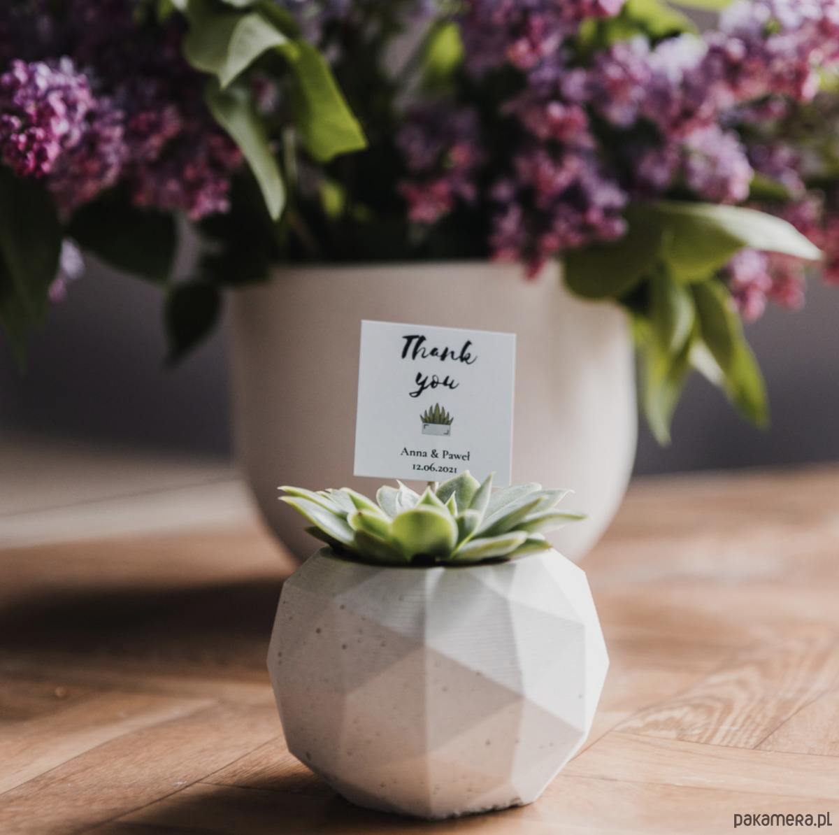 Co powiecie na upominki dla gości weselnych w postaci minimalistycznej betonowej osłonki z żywym sukulentem i personalizowaną etykietką? Za pomocą grafiki i tekstu możemy dopasować do Was lub Waszego motywu przewodniego wesela, tak by wszystko tworzyło piękną całość.