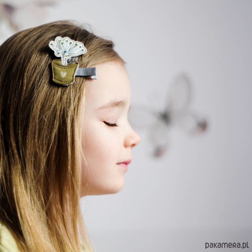 Klips aligator oklejony tasiemką rypsową bardzo dobrze trzyma włosy