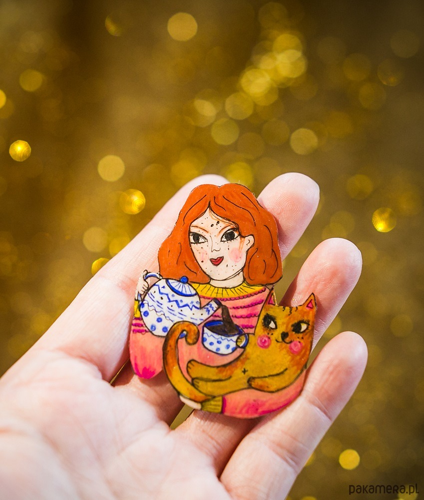 Urocza broszka z kotami