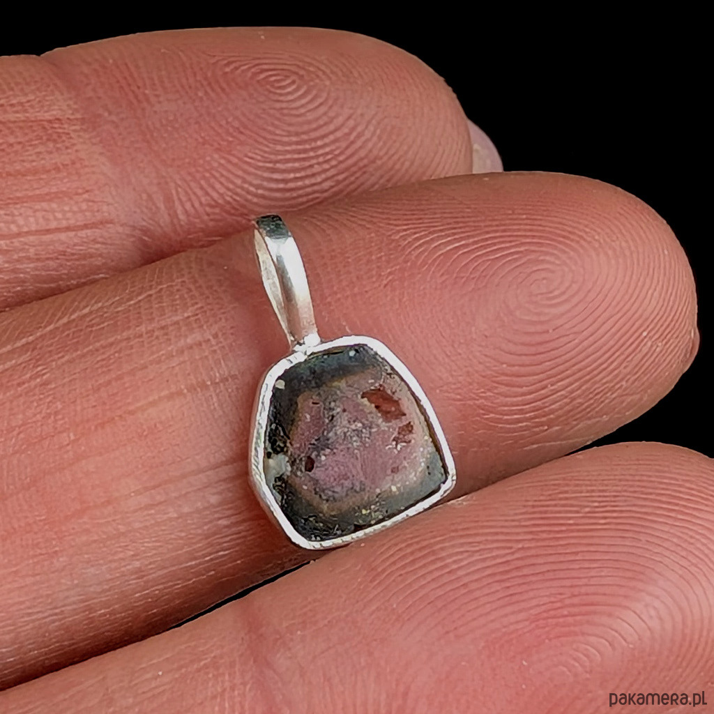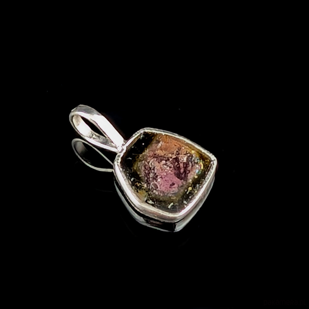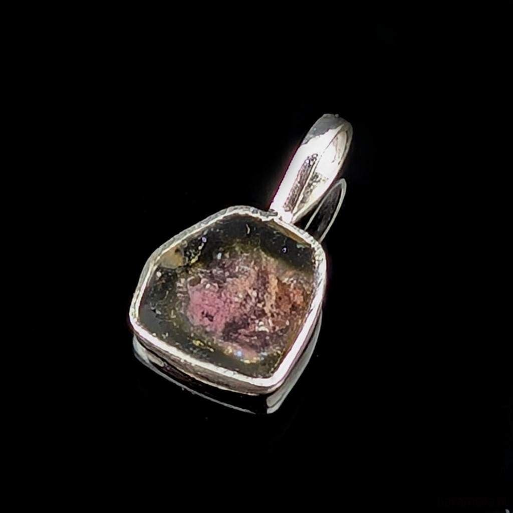Subtelny wisiorek wykonany ze srebra próby 925 oraz turmalinu arbuzowego.