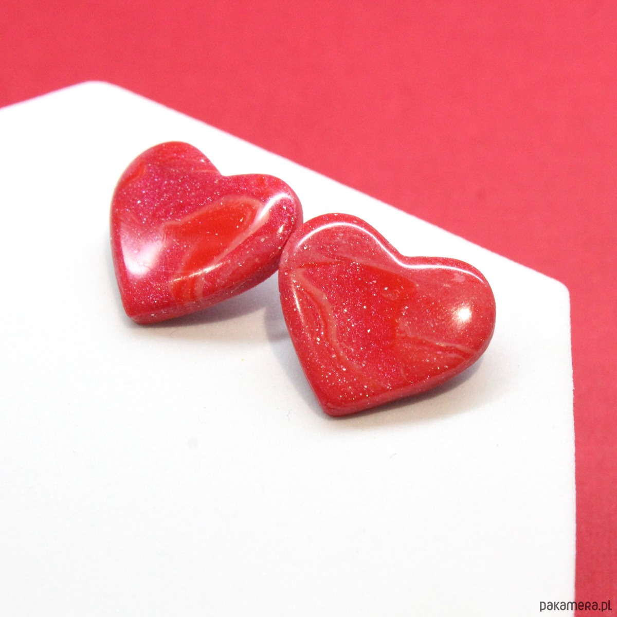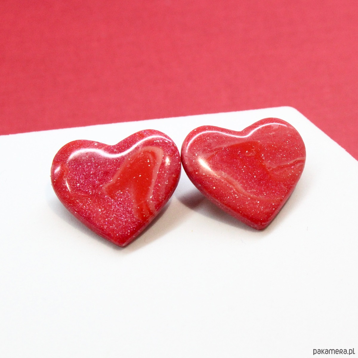 Kolczyki serca wykonane z wysokiej jakości glinki polimerowej Fimo, pokryte żywicą.