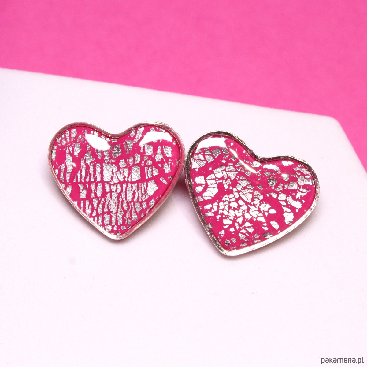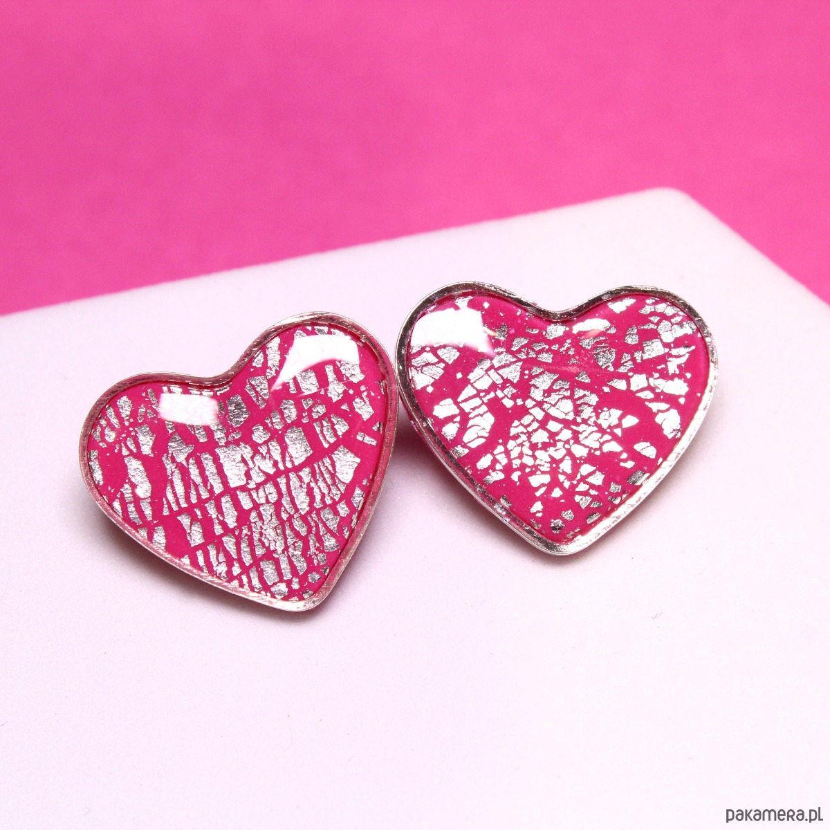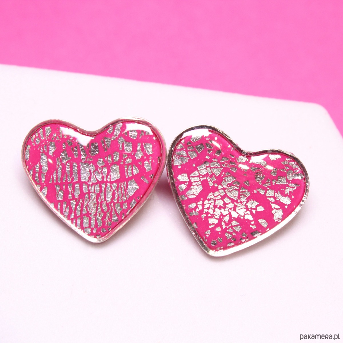 VALENTINE kolczyki różowe serca sztyfty walentynki