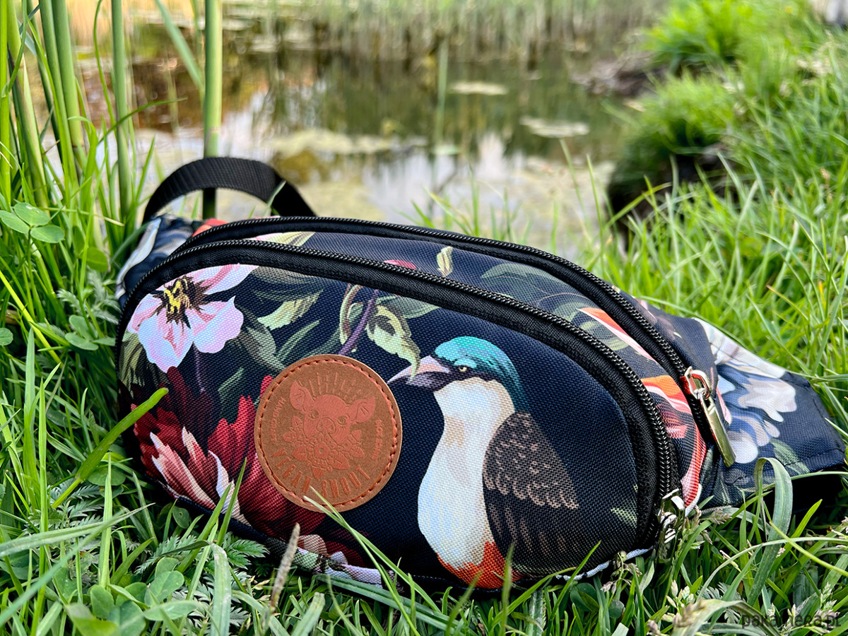 Nasza bestsellerowa nerka z motywem Jerzyka i kolorowym printem, wykonana z wodoodpornej kodury, którą można prać w pralce. Komfortowa w noszeniu, ma regulowany pasek z taśmy i miękko układa się do ciała dzięki wypełnieniu pianką. Do noszenia na skos, w pasie lub na biodrach; dwie pojemne kieszonki zapinane na suwak. Ozdobne logo-świnka z ekoskóry naszyte na froncie kieszonki.