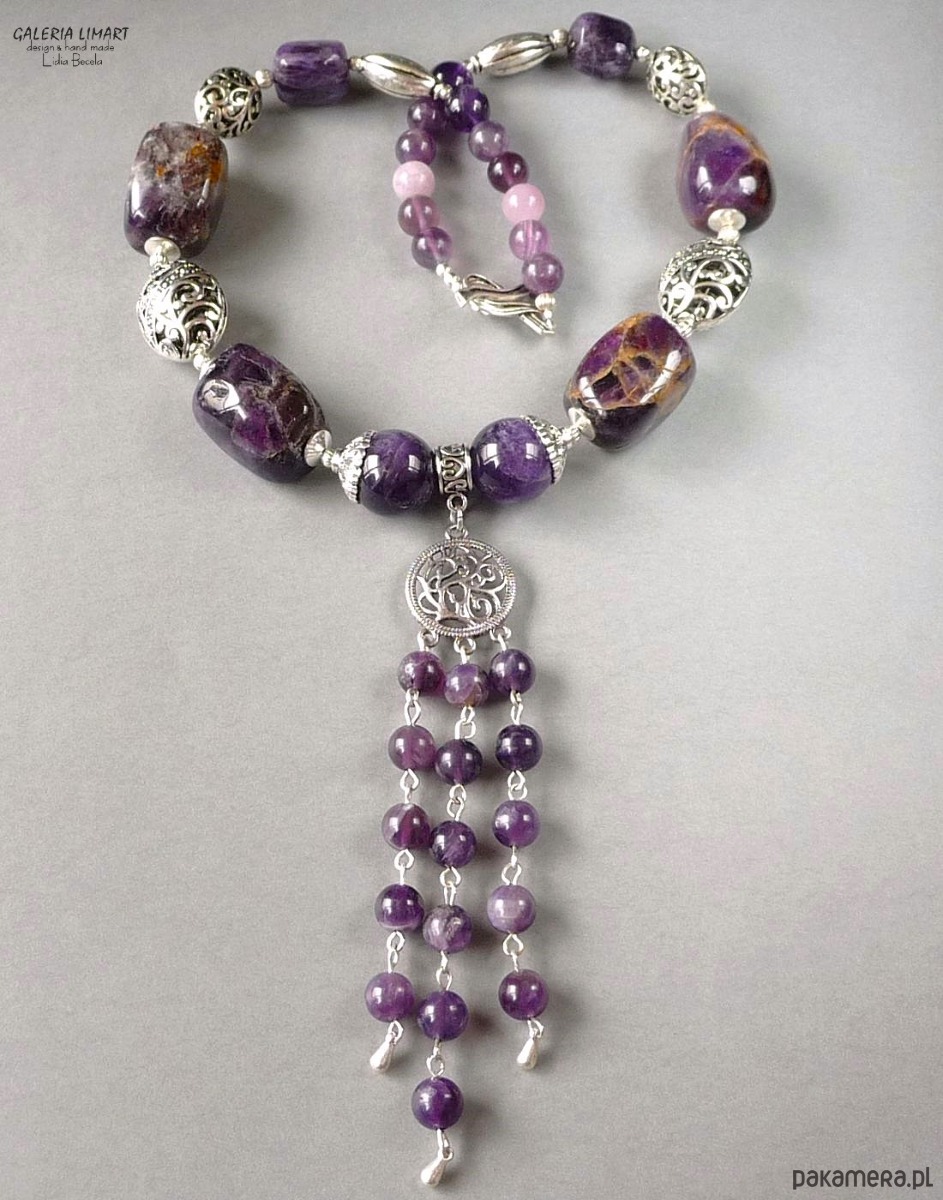 Vintage ametysty w ciekawym naszyjniku dla kochającej unikaty biżuteryjne