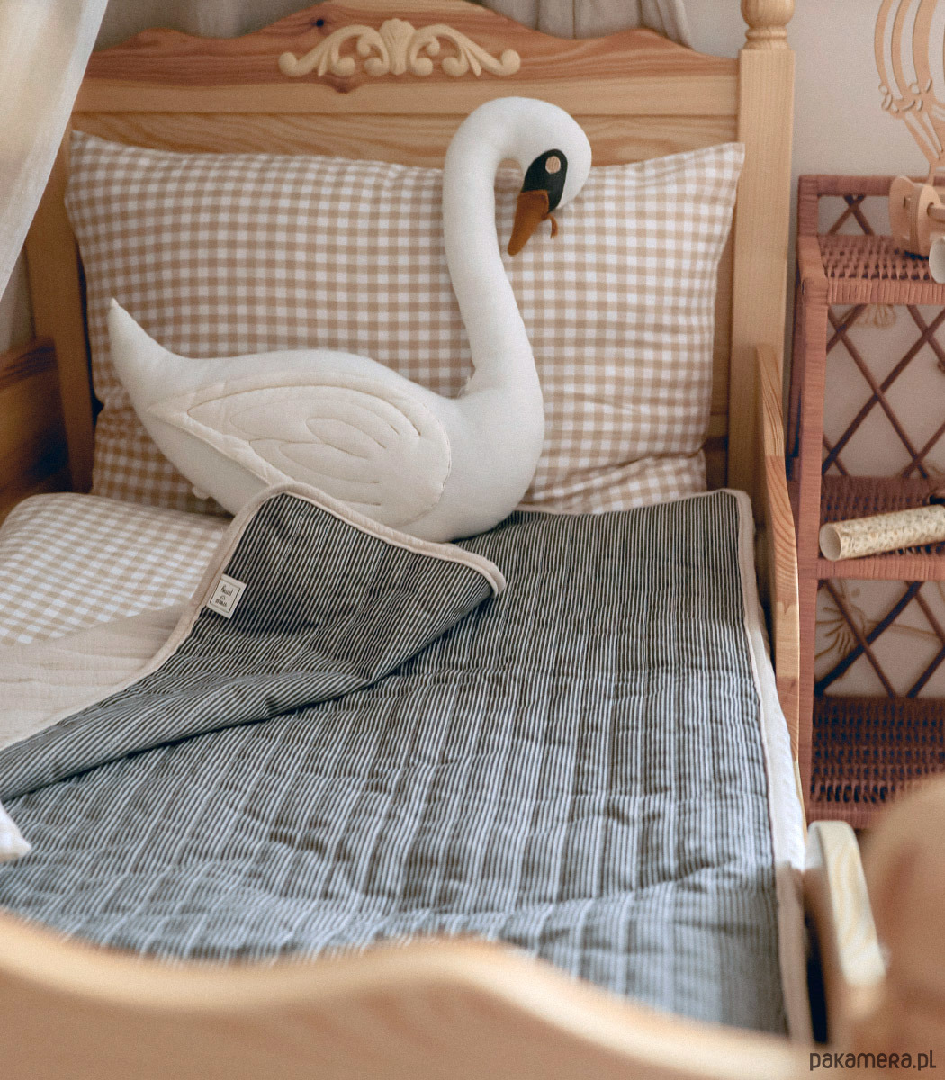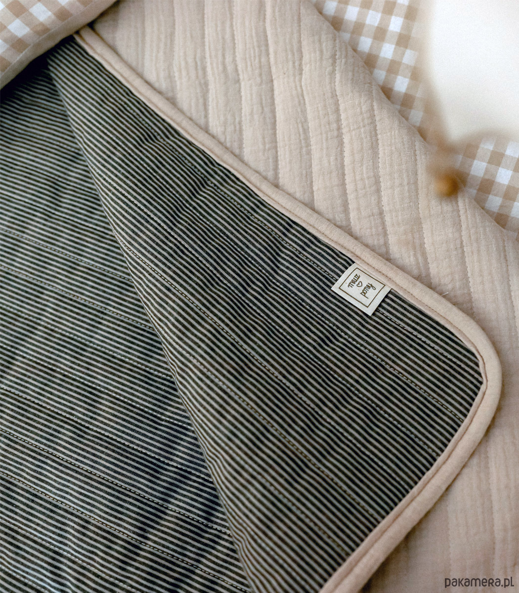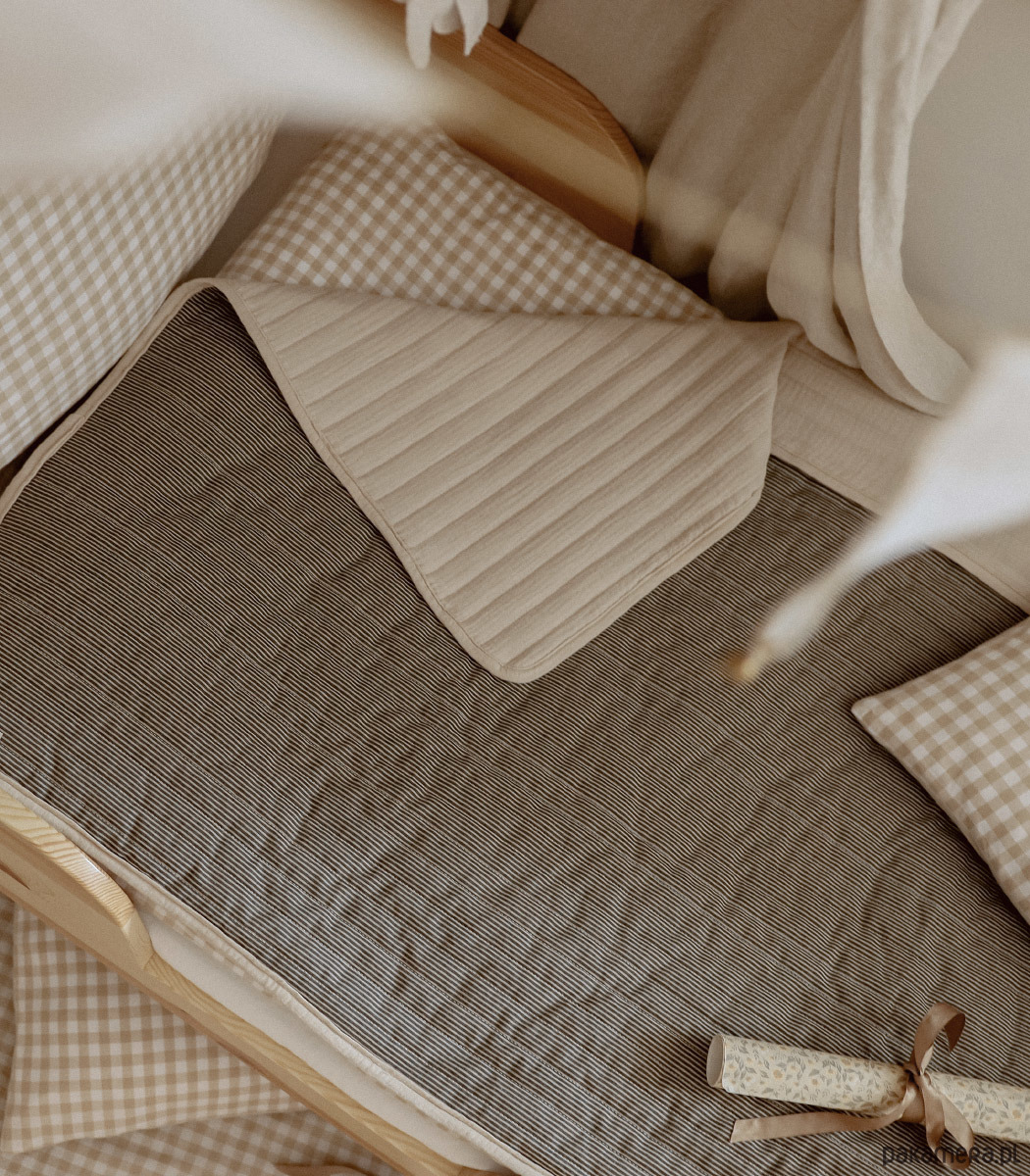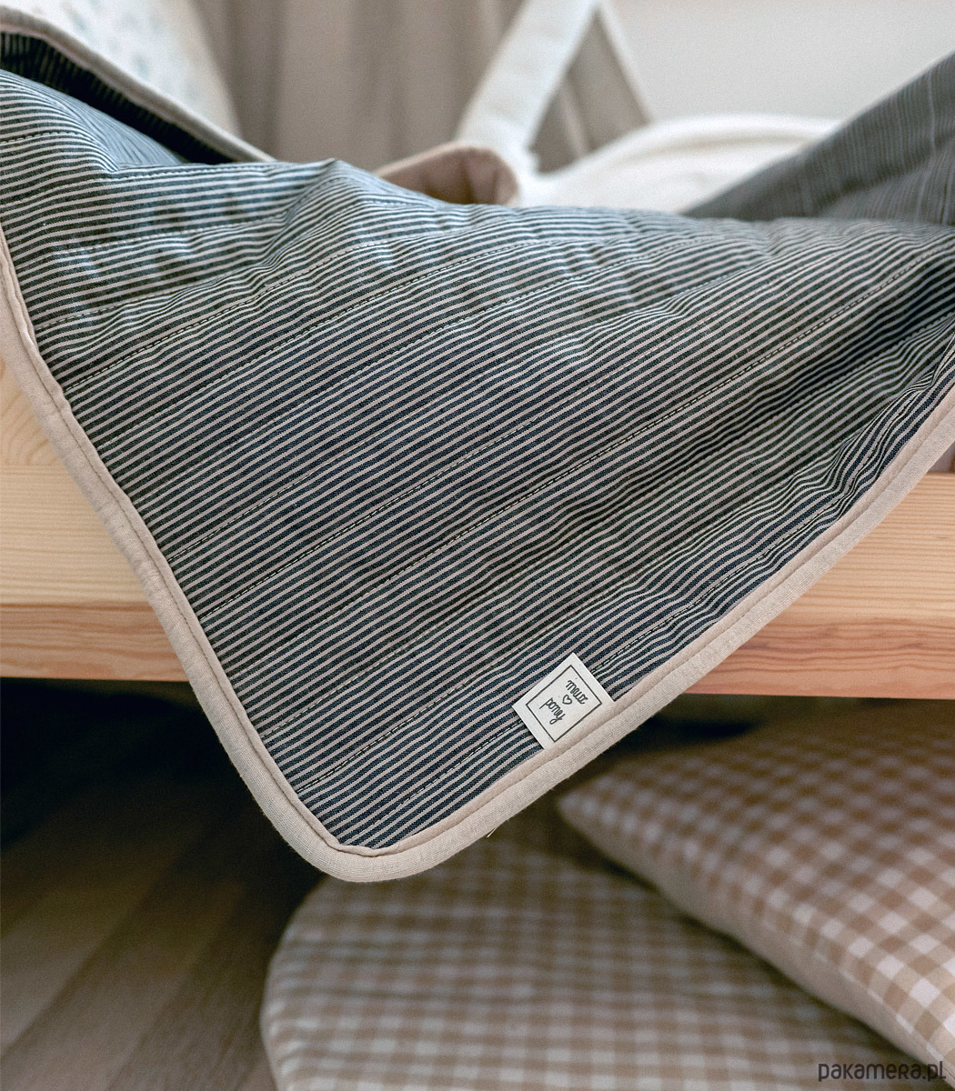 Narzuta wykonana z dwustronnej pikowanej tkaniny.