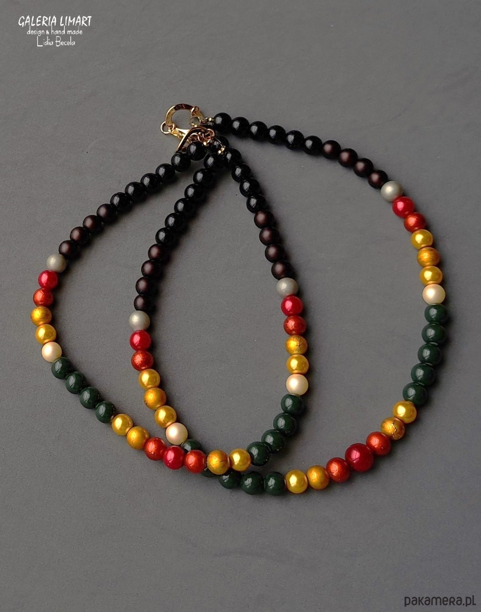 Lubisz taki styl? Jeśli tak to polecam ten uroczy wyrazisty oryginalny naszyjnik stworzony z 10-milimetrowych pięknych szklanych korali bardzo starannie dobranych kolorystycznie z ozdobnymi elementami w kolorze złota w stylu biżuterii boho. Kombinacja i dobór kolorów dala niezwykle efektowny i spektakularny rezultat, tworząc naszyjnik jedyny w swoim rodzaju.