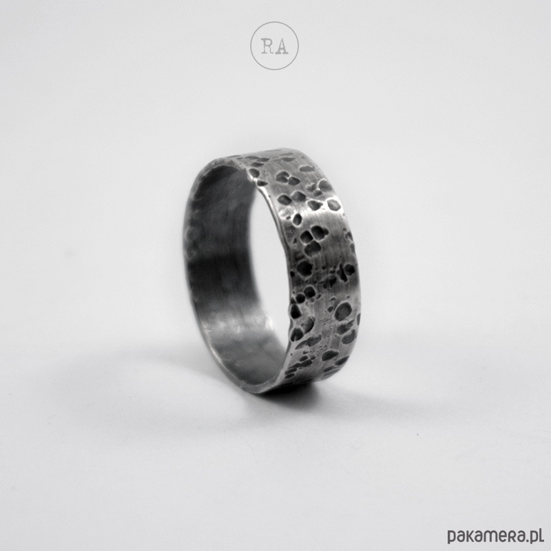 Obrączka wykonana ze srebra, fakturowana, oksydowana