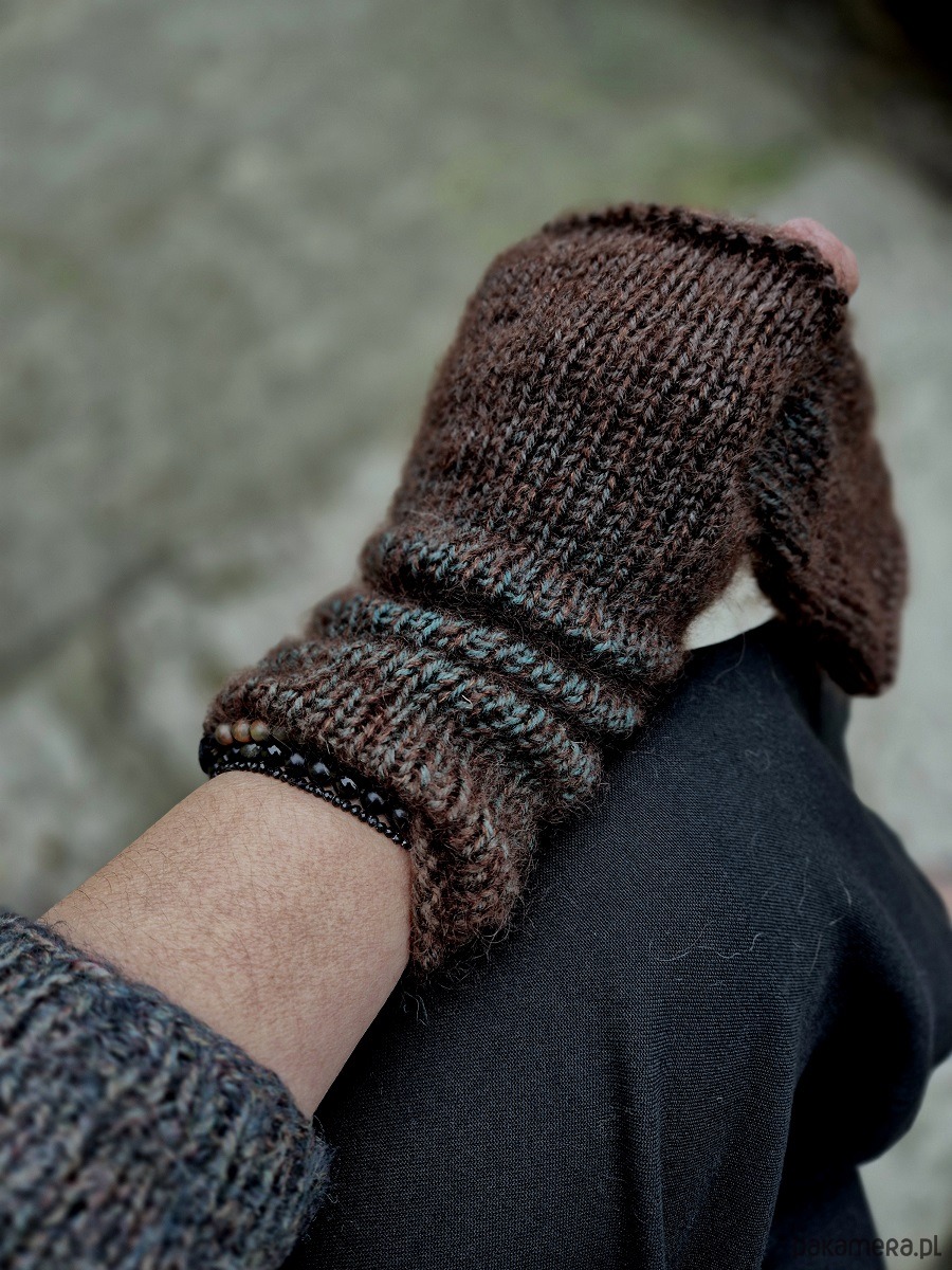 Luksusowe, ciepłe, puszyste i miękkie mitenki wykonane na drutach z wysokiej jakości włóczek:
