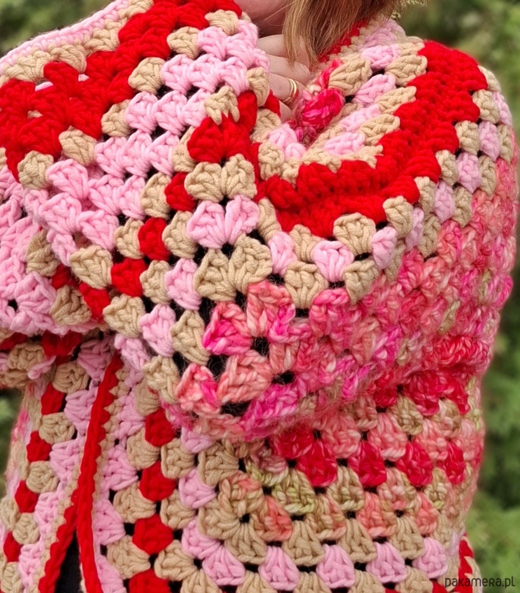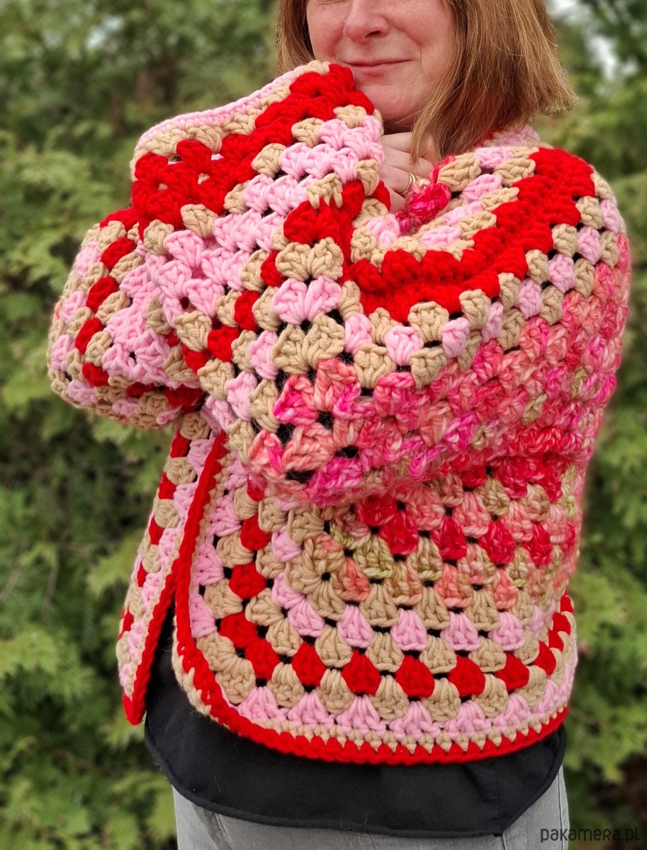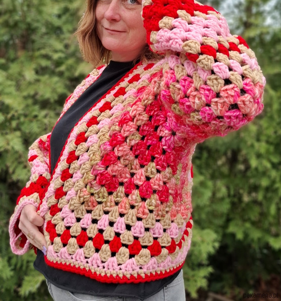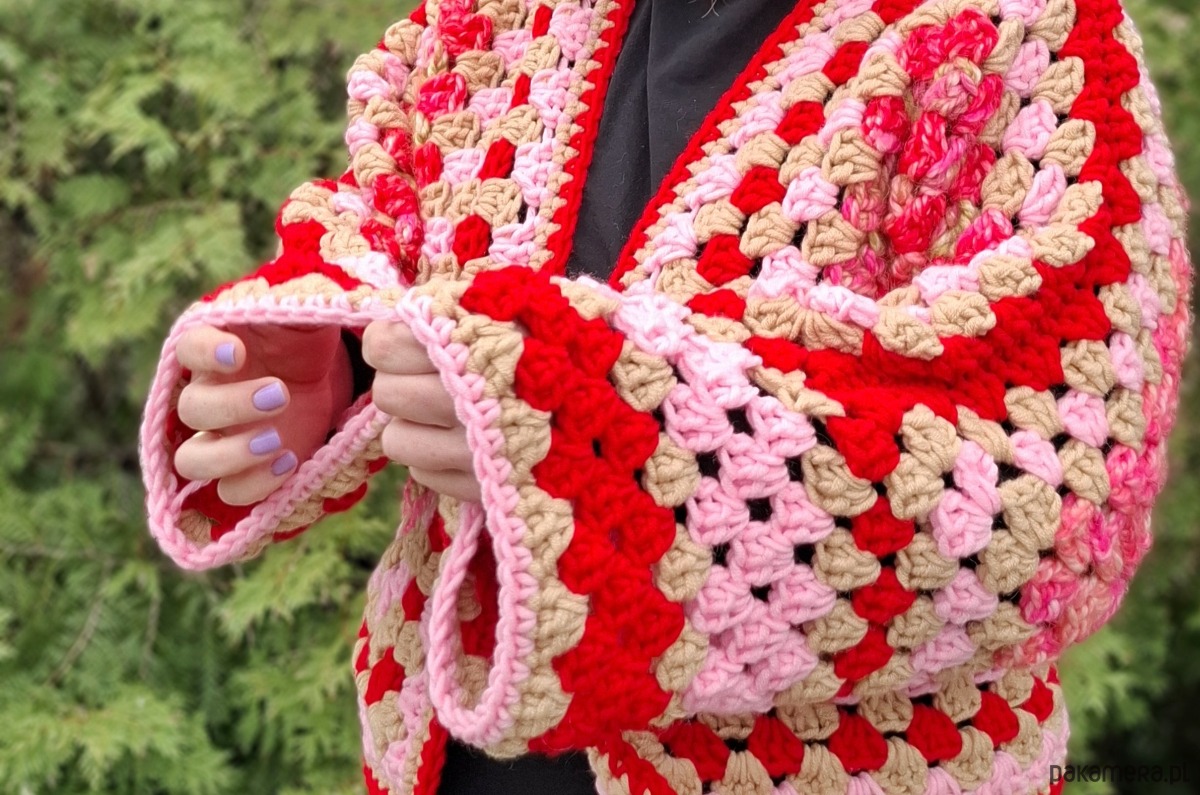 Ręcznie robiony kardigan szydełkowy – kolorowy, gruby, w stylu boho