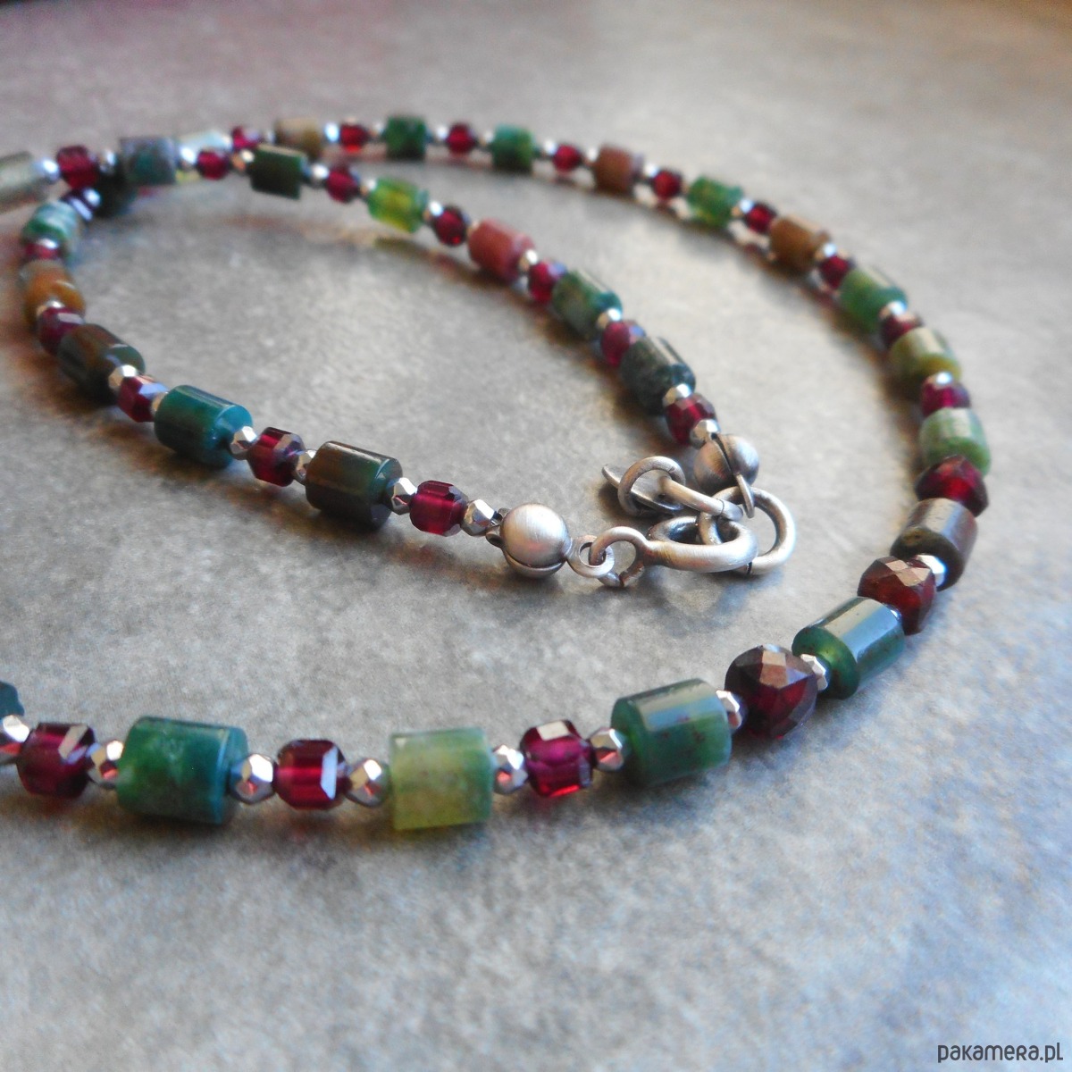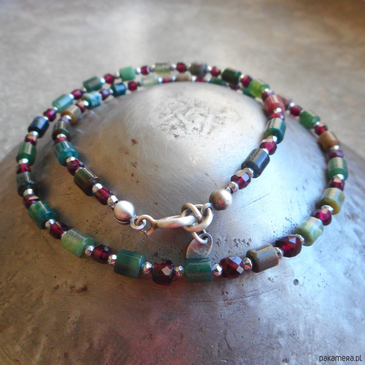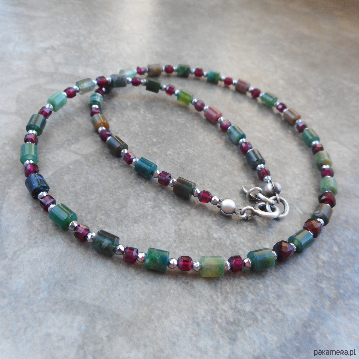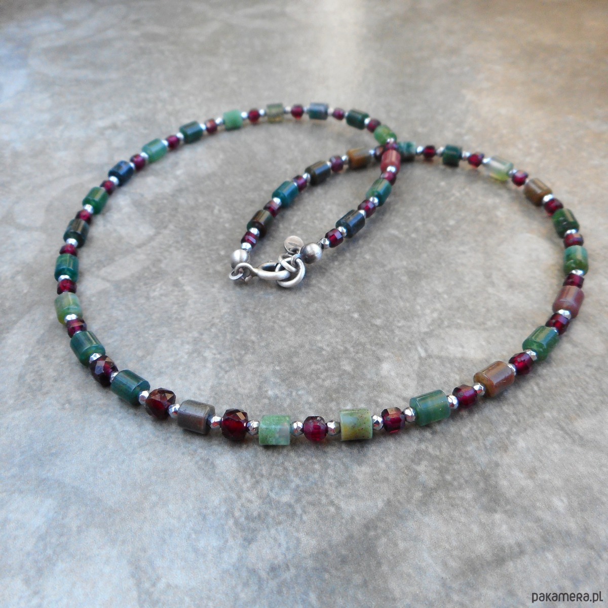 Piękny, krótki naszyjnik wykonany ze szlachetnego srebra i kamieni naturalnych; prosty w formie, minimalistyczny i elegancki.