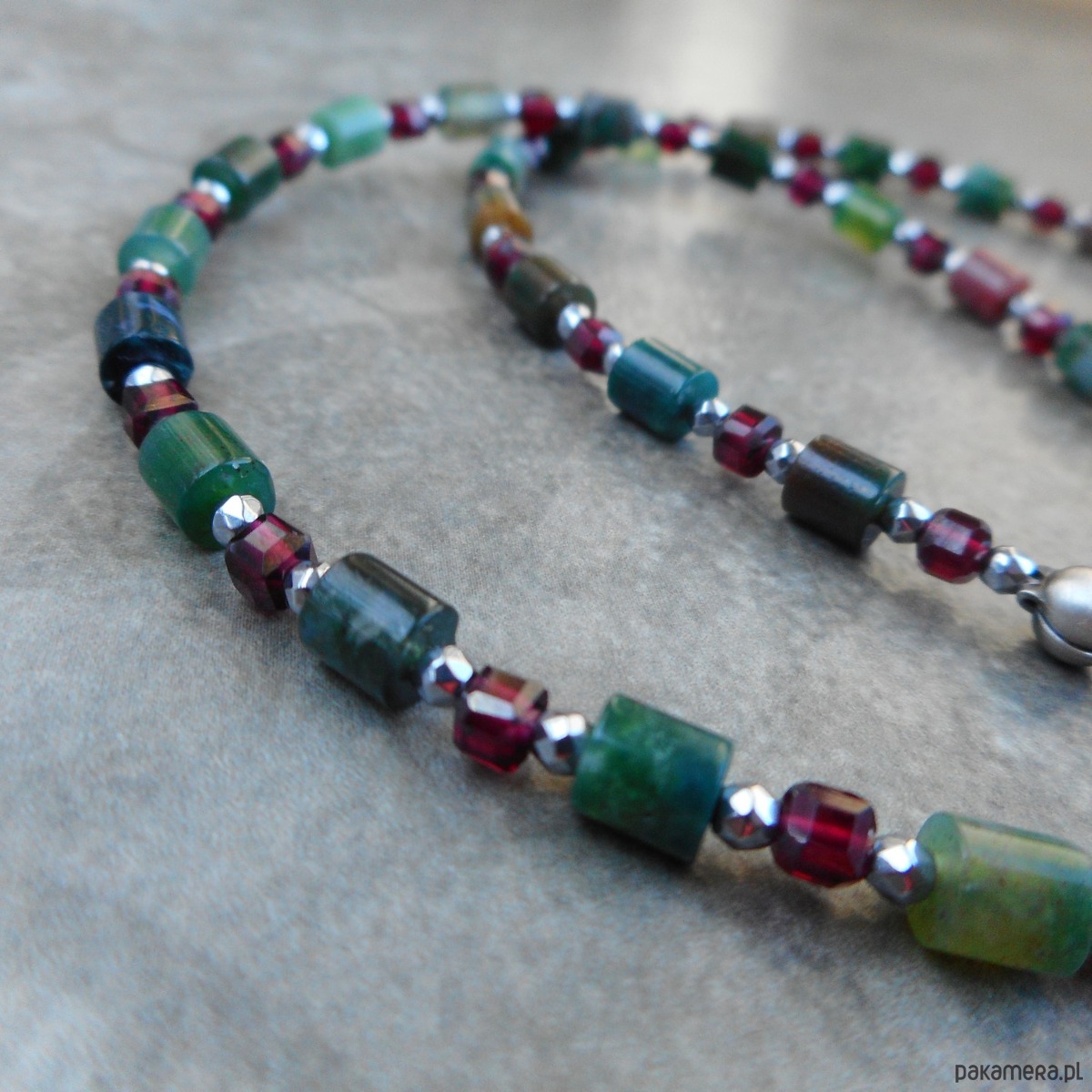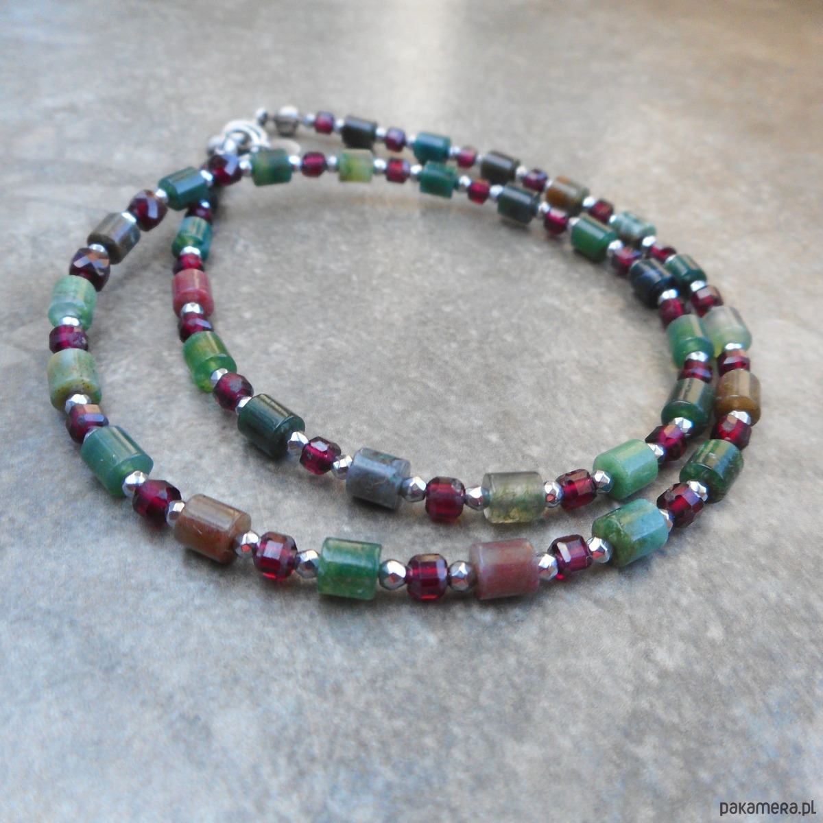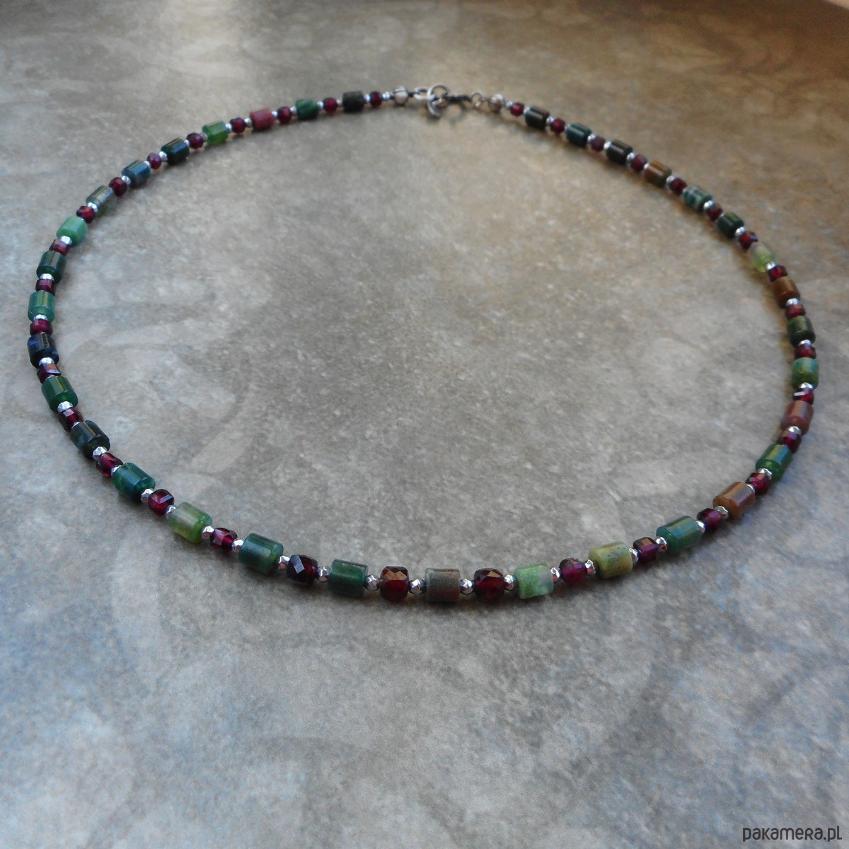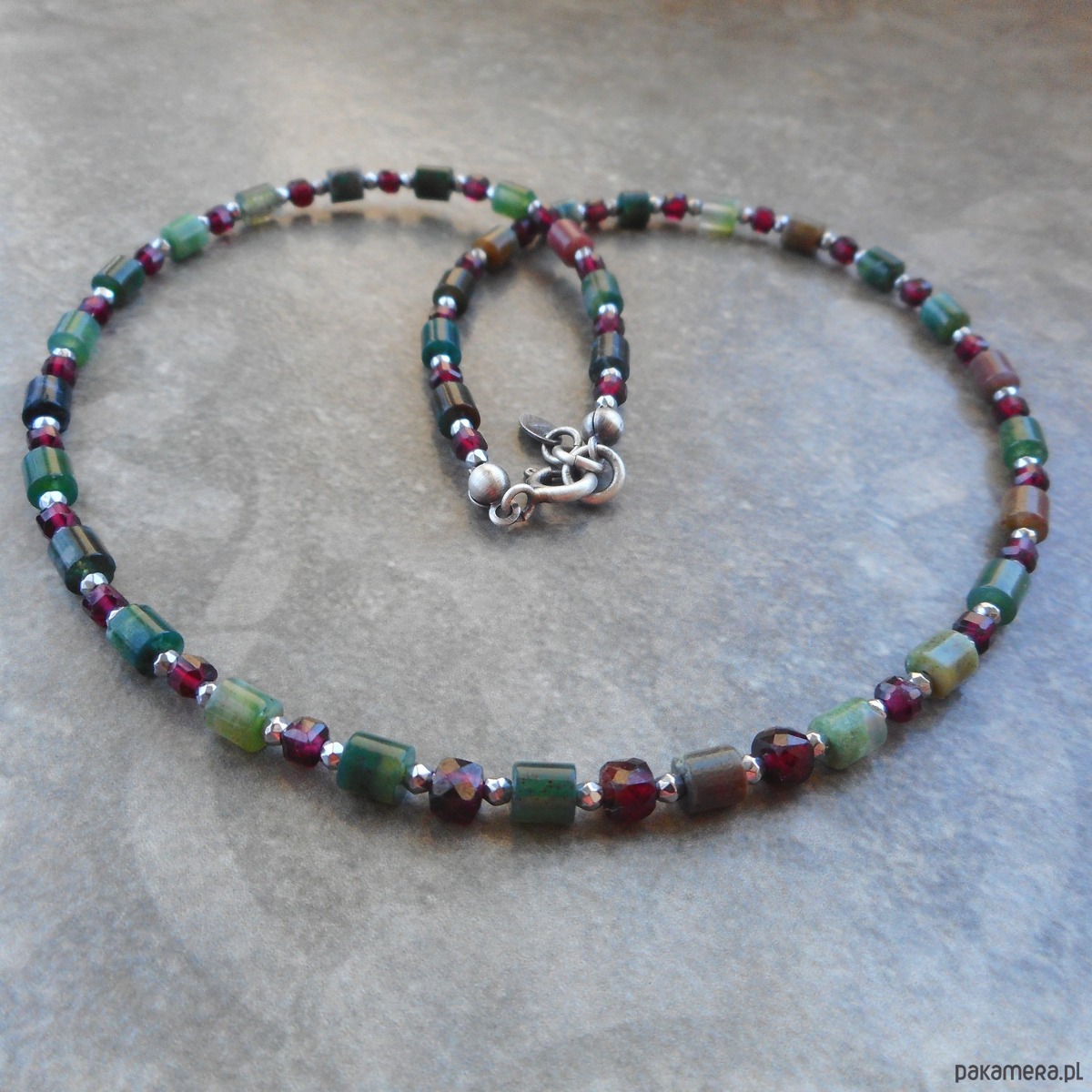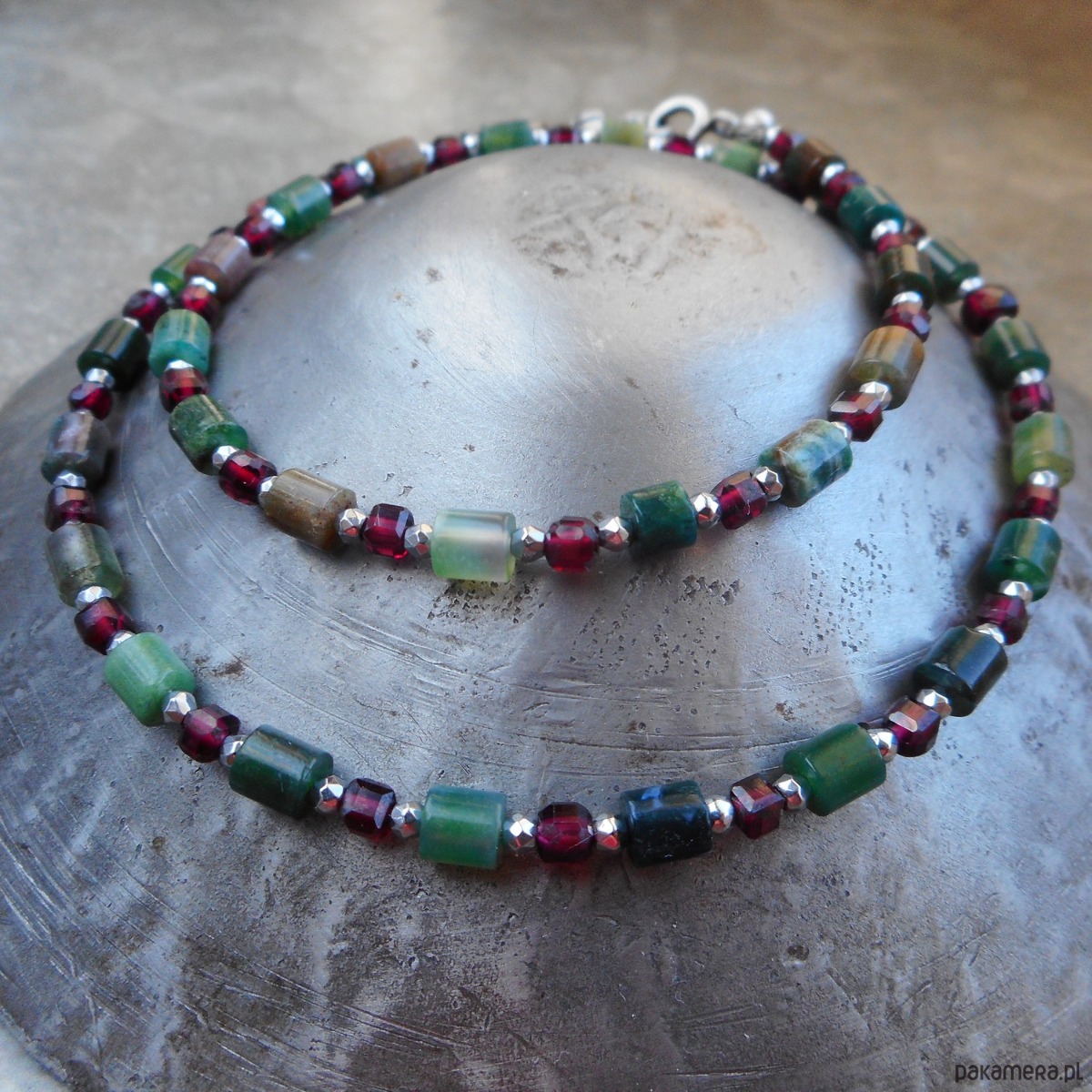 Piękny, krótki naszyjnik wykonany ze szlachetnego srebra i kamieni naturalnych; prosty w formie, minimalistyczny i elegancki.