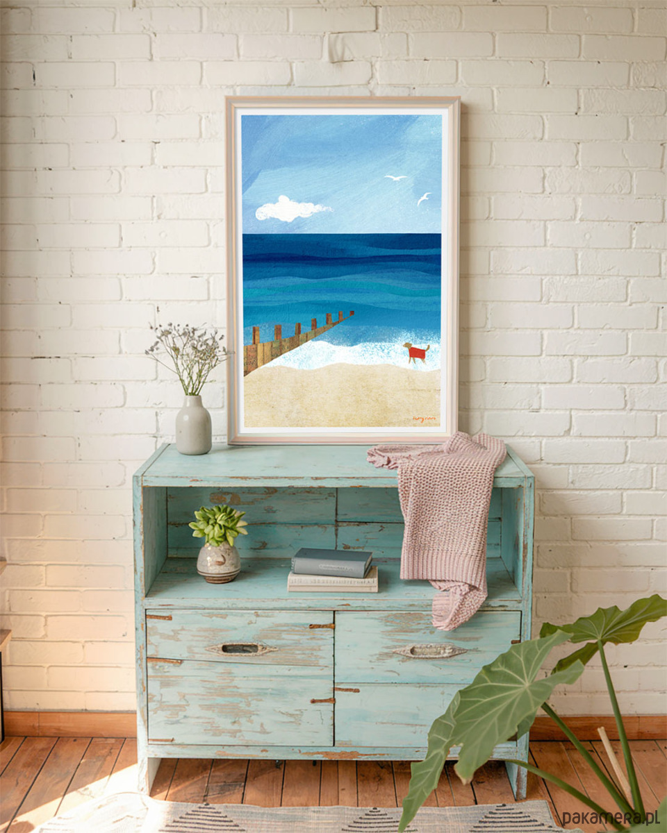 Psie spacery to beztroska zabawa pełna niekończących się możliwości i nowych doświadczeń. Grafika z psem w czerwonym kubraczku przenosi to uczucie spontanicznej radości wprost na nasze ściany.