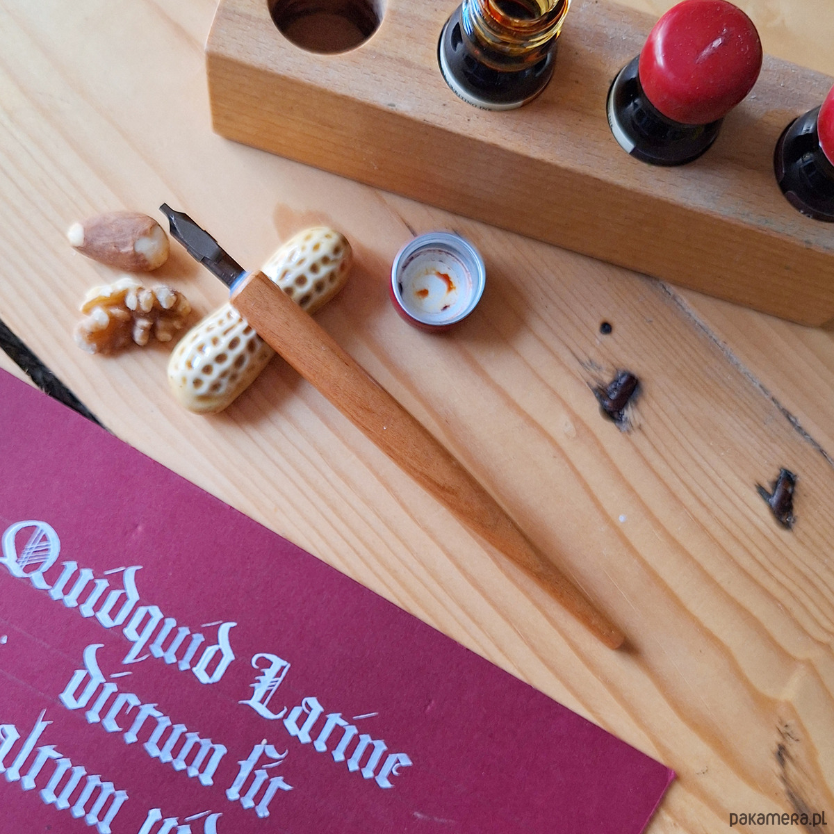 Warsztaty odbędą się w naszej przytulnej pracowni na Żoliborzu, gdzie panuje kameralna, sprzyjająca nauce atmosfera. Nauczysz się pisać gotycką teksturą, poznając przy tym fascynującą historię skryptorium – miejsca, w którym powstawały średniowieczne manuskrypty. Dowiesz się, czym pisano dawniej, jak warzono atrament i jakie znaczenie miały marginesy, abrewiacje oraz ligatury.