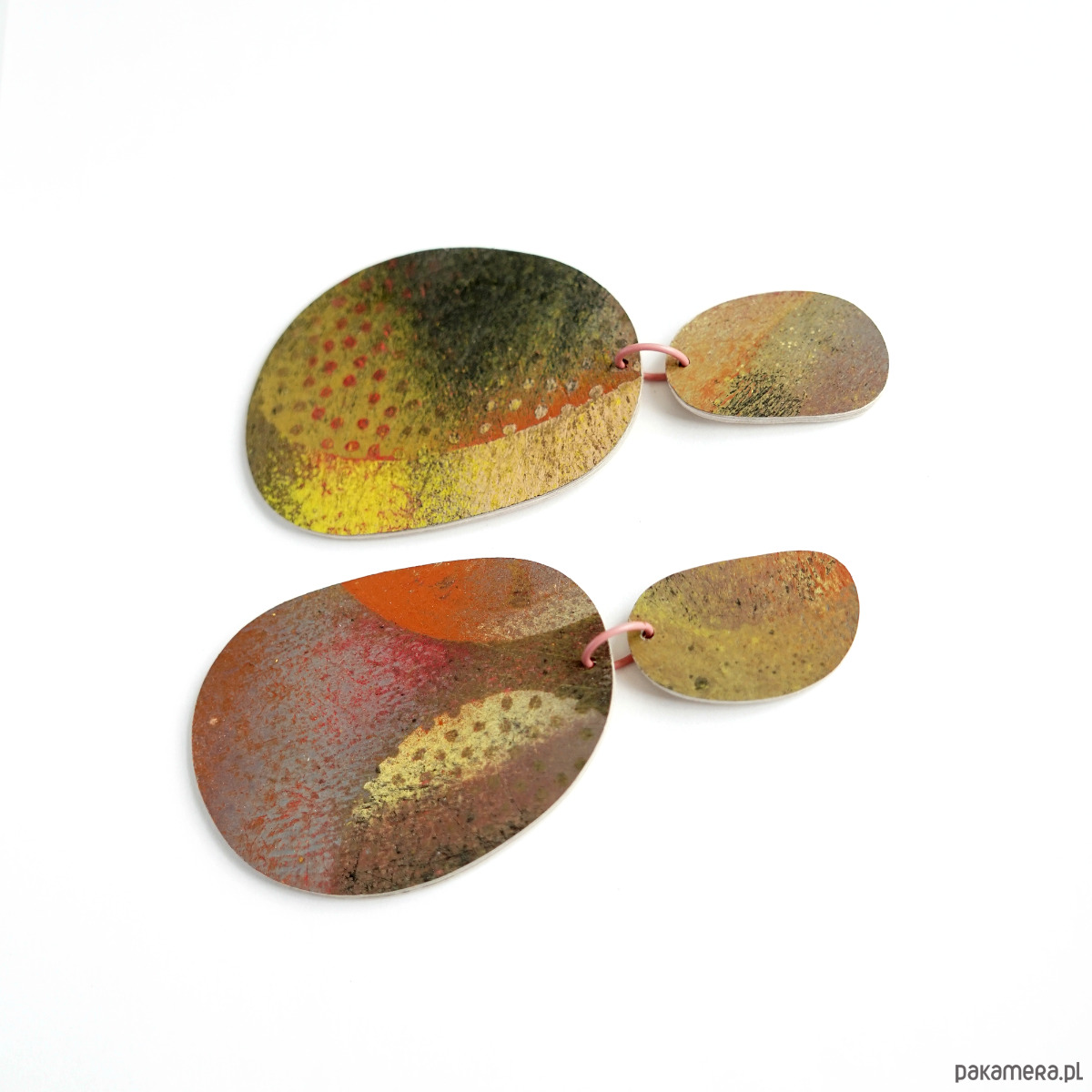 Kolczyki są częściowo wodoodporne – kilka kropel deszczu nic im nie zrobi, a werniks nie zacznie się rozpuszczać, ponieważ nie korzystam z lakierów na bazie wody. Pamiętaj jednak, że to drewno i jeżeli zbyt długo będzie wilgotne, może w końcu nieodwracalnie spuchnąć. Wytrzyj swoją biżuterię po zamoczeniu i odstaw na moment, żeby wyschła.