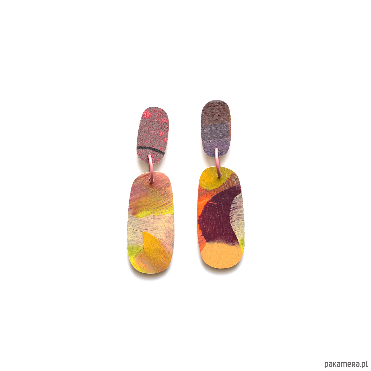Wahacze 081 to wyjątkowe, imponujące i zupełnie unikatowe kolczyki, od początku do końca stworzone w mojej pracowni. W przeciwieństwie do większości dostępnej biżuterii drewnianej, ta nie została wycięta laserowo, ale ręcznie przeze mnie. Udało mi się w ten sposób uniknąć spalonych, brązowych krawędzi; zrobiłam też krok w tył od produkcji bliższej masowej w kierunku rękodzieła w pełnym tego słowa znaczeniu. Wahacze zostały również dokładnie oszlifowane, aby ich kształt był dokładnie taki, jak zaplanowałam.