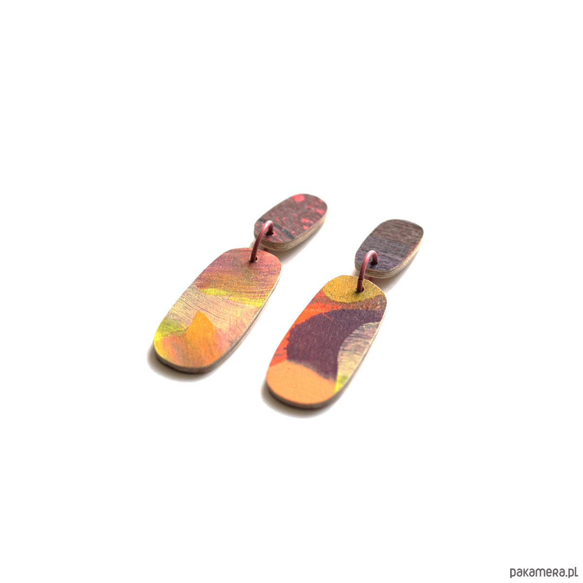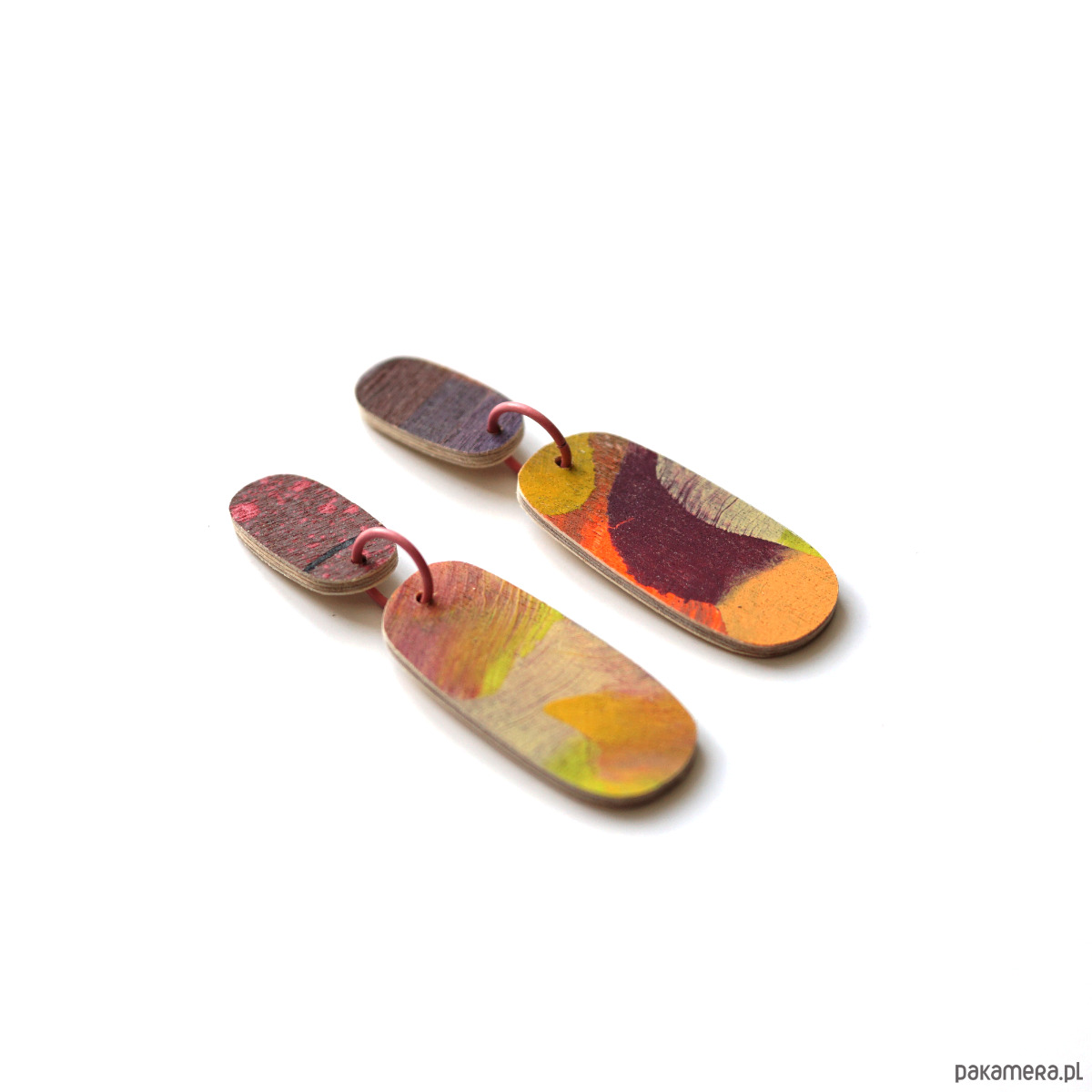 Kolczyki są częściowo wodoodporne – kilka kropel deszczu nic im nie zrobi, a werniks nie zacznie się rozpuszczać, ponieważ nie korzystam z lakierów na bazie wody. Pamiętaj jednak, że to drewno i jeżeli zbyt długo będzie wilgotne, może w końcu nieodwracalnie spuchnąć. Wytrzyj swoją biżuterię po zamoczeniu i odstaw na moment, żeby wyschła.