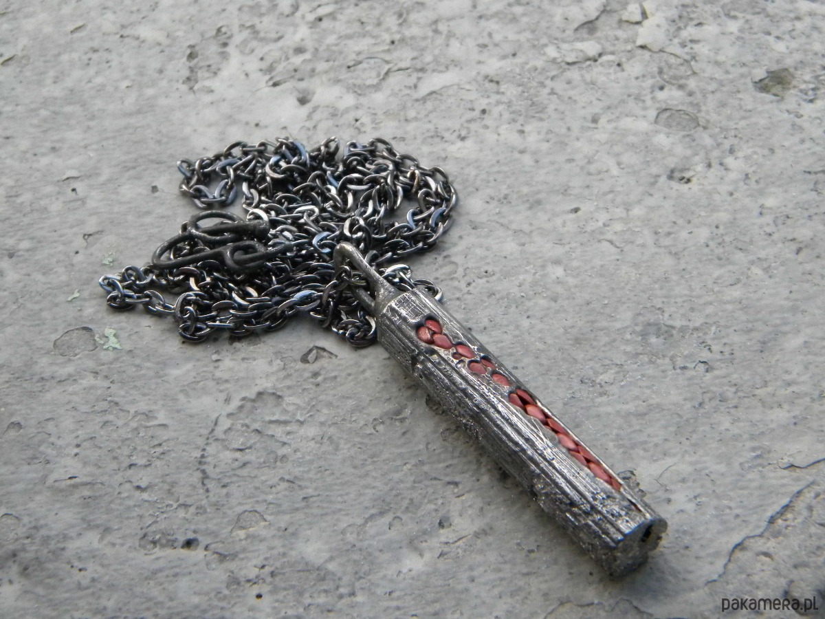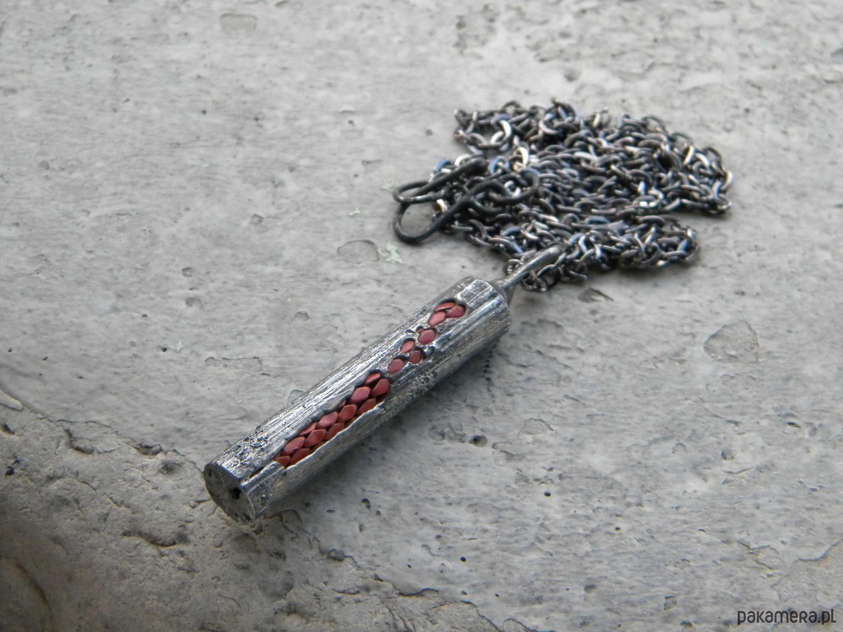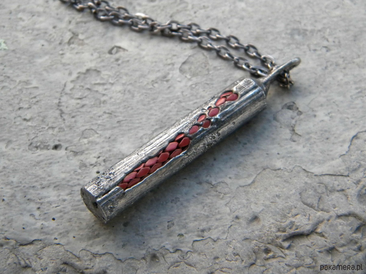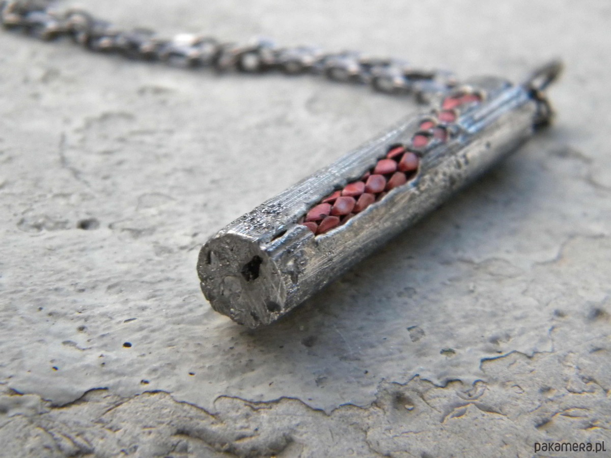 wykonany ze szkła i miedzianego elementu pokrytego emalią