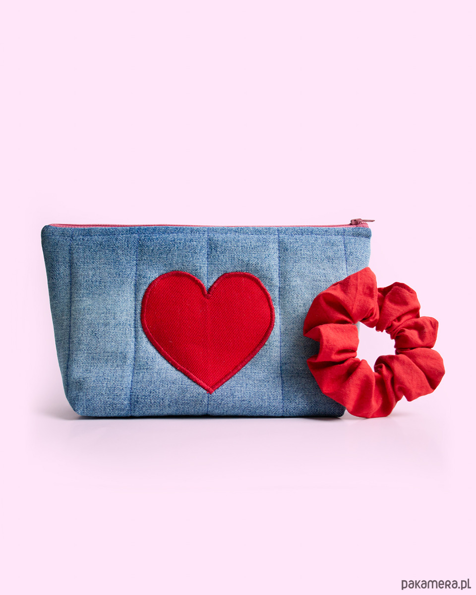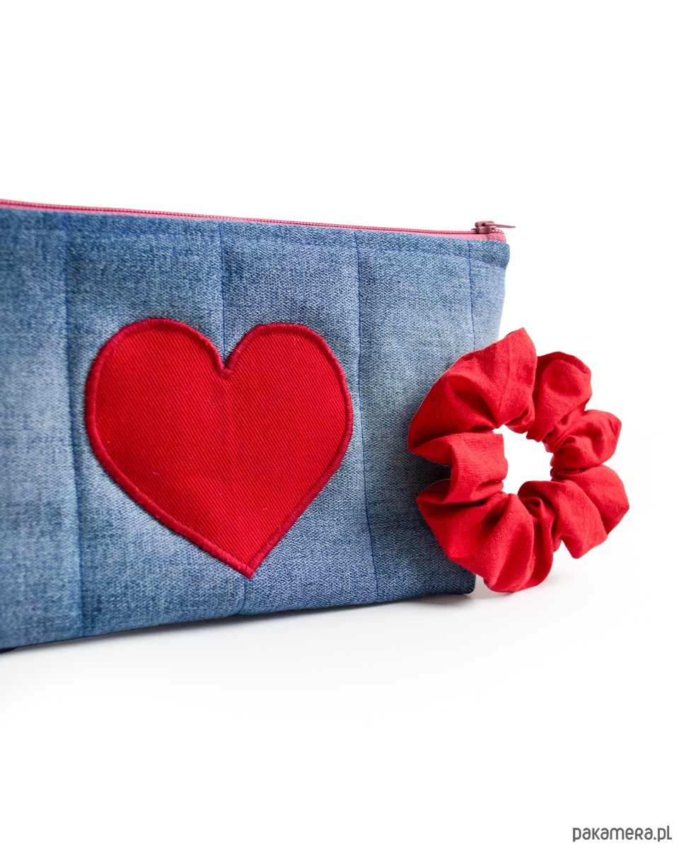 Pikowana kosmetyczka z walentynkowym sercem - unikat.