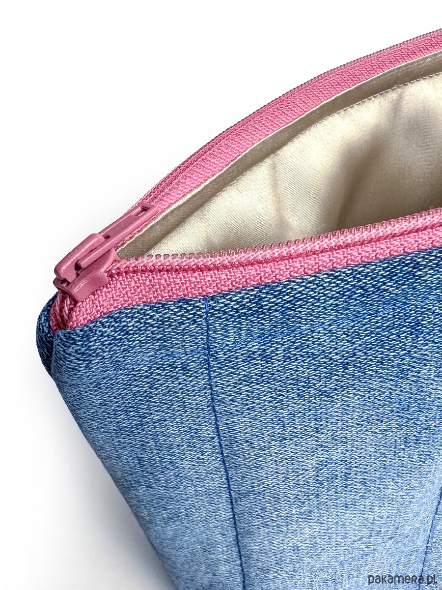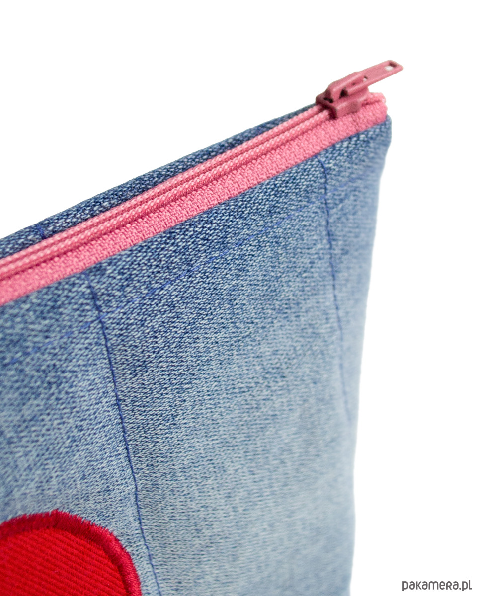 Stylowa i praktyczna kosmetyczka wykonana z denimu pochodzącego z przerobionych spodni Wrangler.