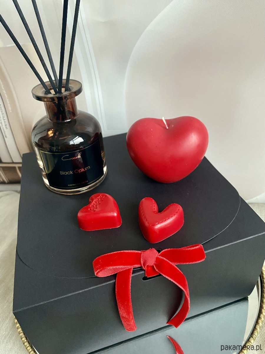 - dekoracyjną ,ekologiczną świecę sojową (bez zapachu) w kształcie serca- efektowną, romantyczną i przyciągającą wzrok (wymiar świecy wys. 60mm, wys. 80mm)