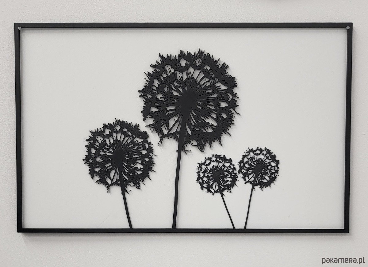 Minimalistyczna elegancja i subtelne piękno natury połączone w jednej wyjątkowej dekoracji. Obraz 3D "Dmuchawce" to ręcznie wykonana ozdoba ścienna, stworzona za pomocą precyzyjnej technologii druku 3D. Czarny, ażurowy wzór kwiatów dmuchawca na białym tle tworzy efekt lekkości i harmonii, idealnie wpisując się w nowoczesne oraz skandynawskie wnętrza.
