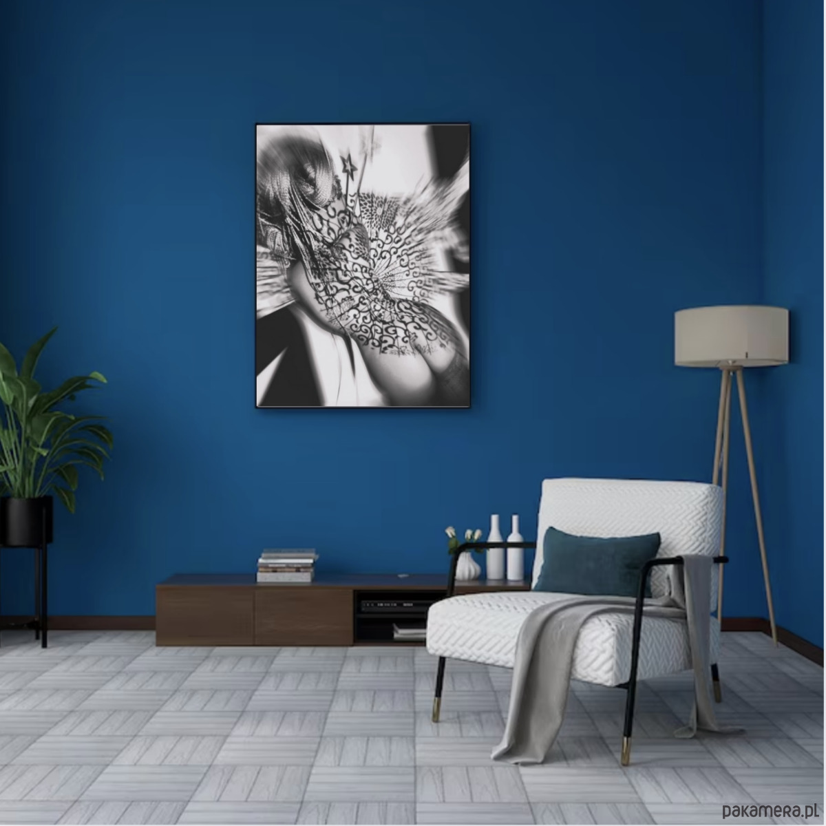 Fotomanipulacja artystyczna na płótnie satynowanym 60x60 cm, gotowa do zawieszenia na ścianie -naciągnięta na solidny blejtram i utrwalona werniksem (mat lub piękny pół połysk satynowy), co daje dodatkowe zabezpieczenie przed urazami zewnętrznymi. Werniks w bardzo elegancki sposób wydobywa fakturę płótna, a pół połysk dodatkowo ożywia kolory. Dzięki werniksowi można obraz od czasu do czasu delikatnie przetrzeć na sucho z kurzu.
