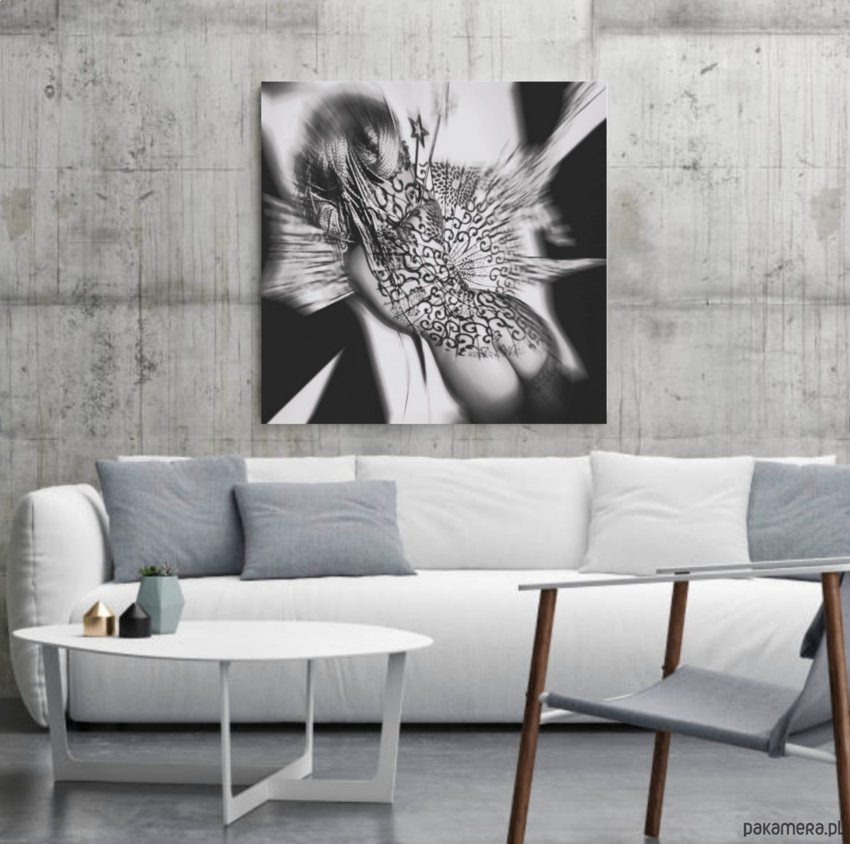 Fotomanipulacja artystyczna na płótnie satynowanym 60x60 cm, gotowa do zawieszenia na ścianie -naciągnięta na solidny blejtram i utrwalona werniksem (mat lub piękny pół połysk satynowy), co daje dodatkowe zabezpieczenie przed urazami zewnętrznymi. Werniks w bardzo elegancki sposób wydobywa fakturę płótna, a pół połysk dodatkowo ożywia kolory. Dzięki werniksowi można obraz od czasu do czasu delikatnie przetrzeć na sucho z kurzu.