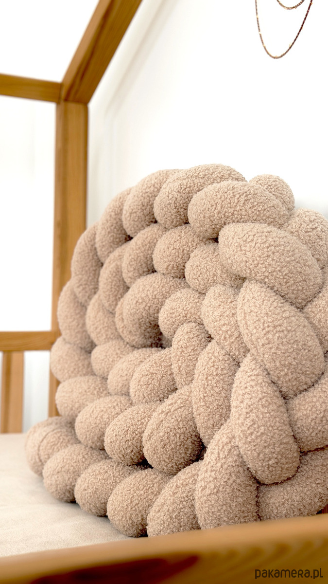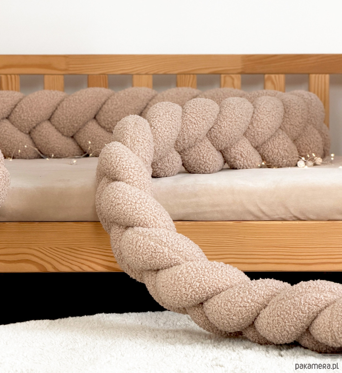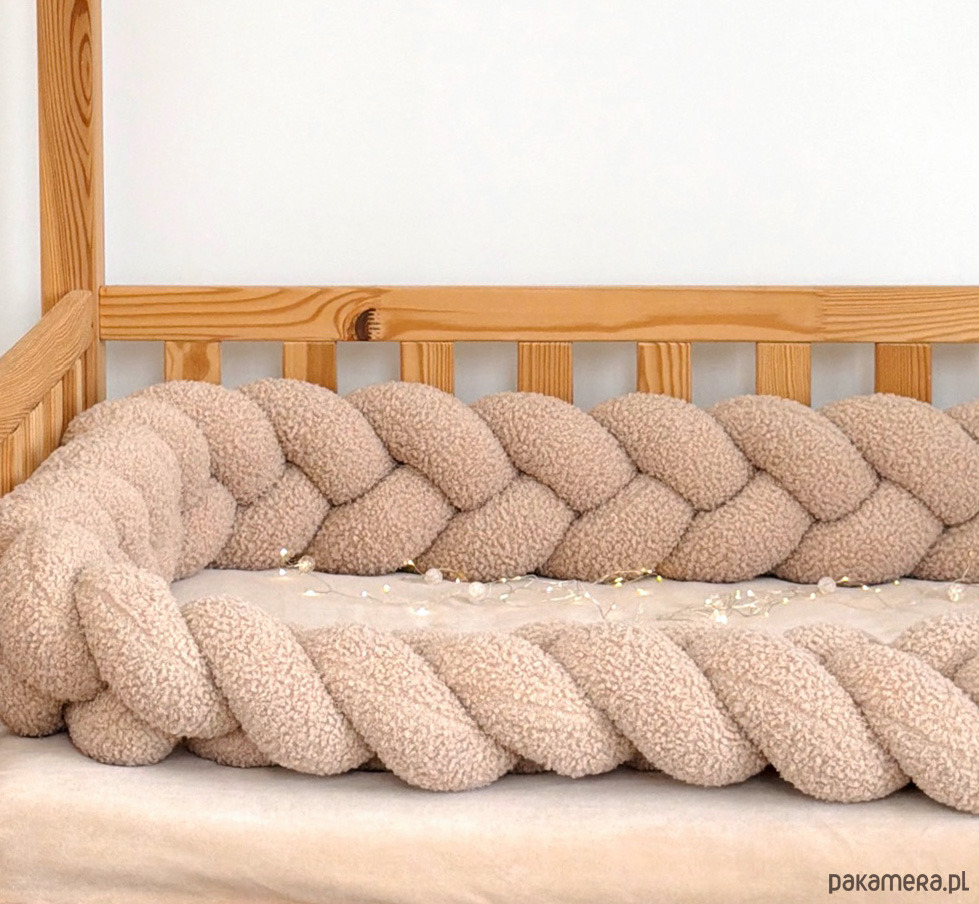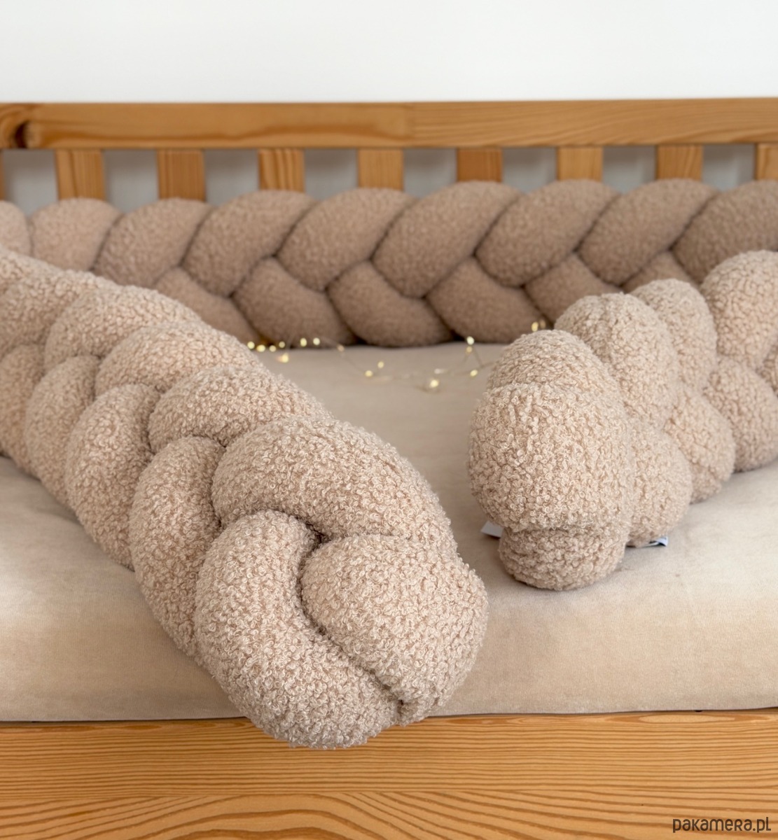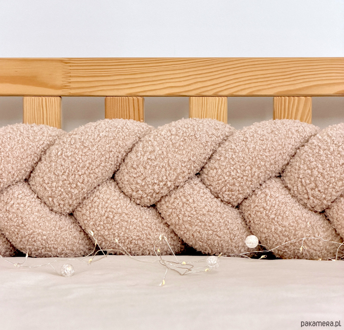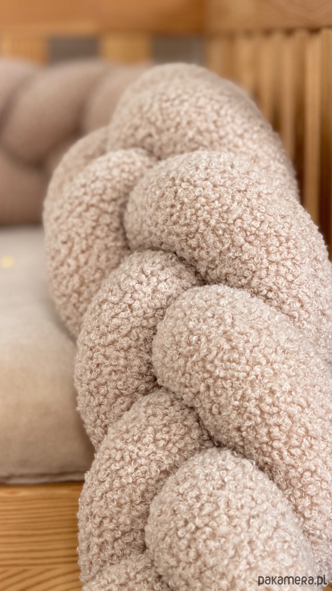 Warkocz do łóżeczka 3 pasma - boucle to miękki, pleciony dodatek do pokoju dziecka, który tworzy przytulną i harmonijną przestrzeń.