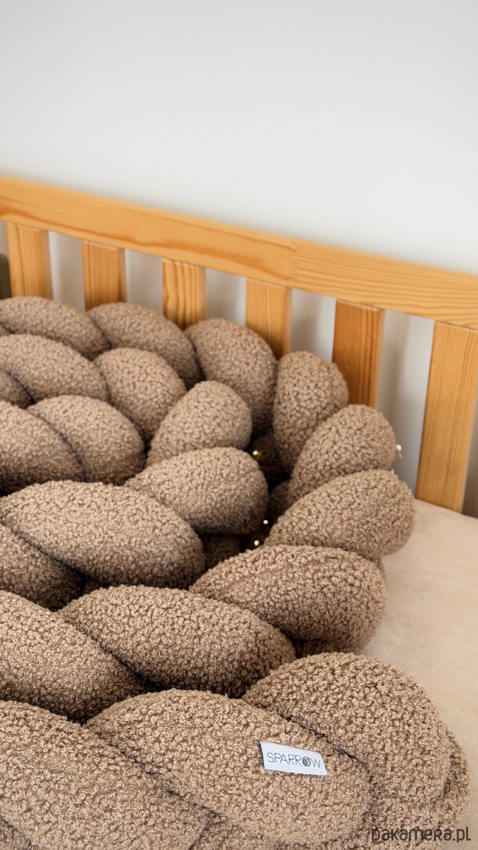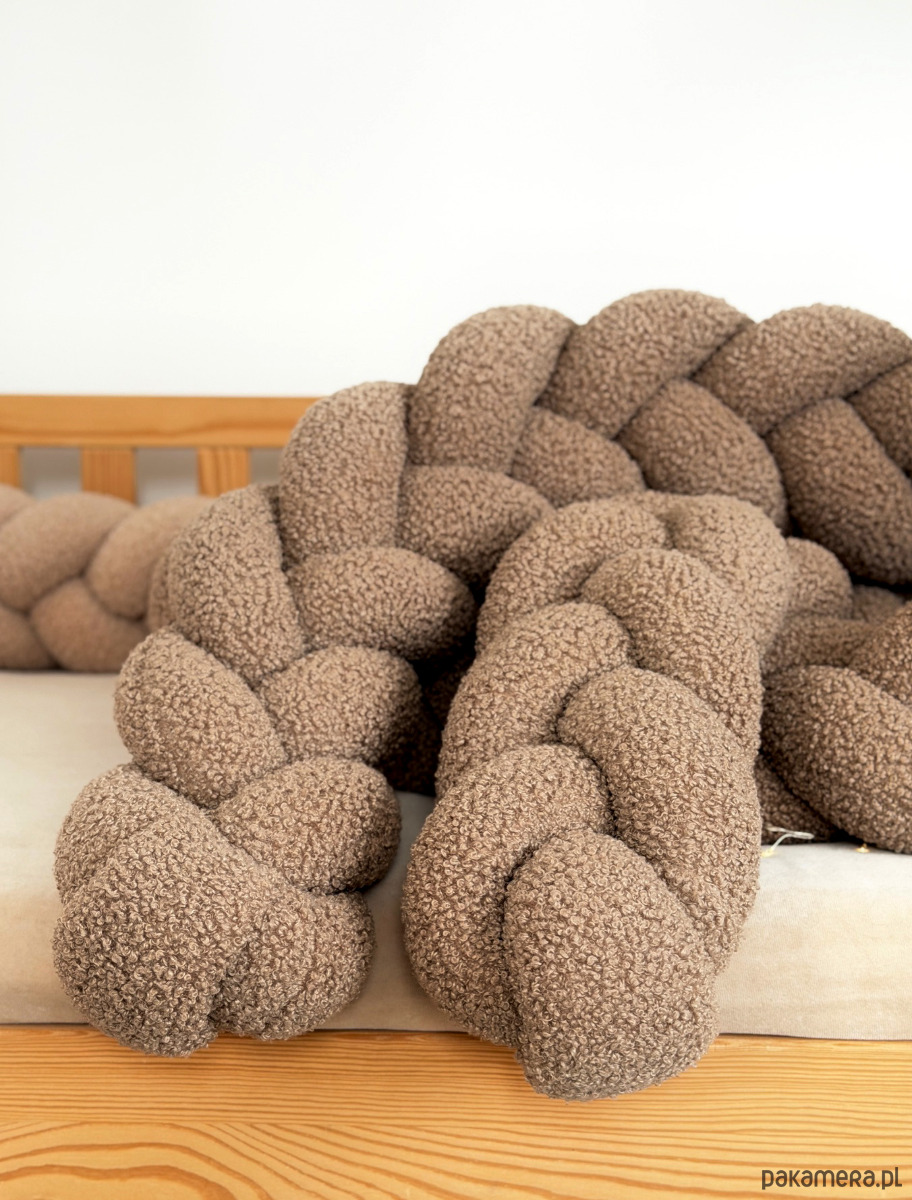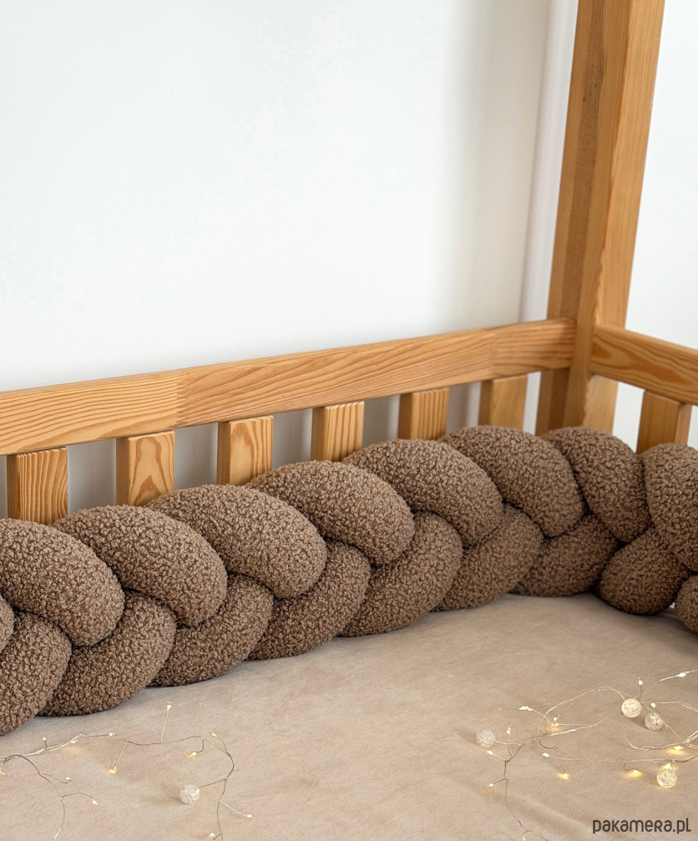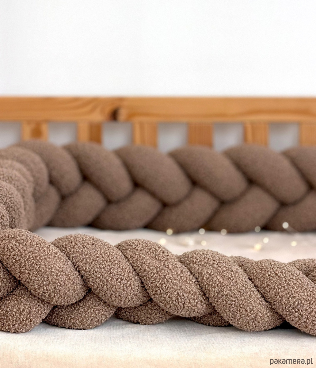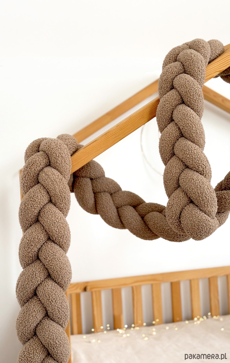 Warkocz do łóżeczka 3 pasma - boucle to miękki, pleciony dodatek do pokoju dziecka, który tworzy przytulną i harmonijną przestrzeń.