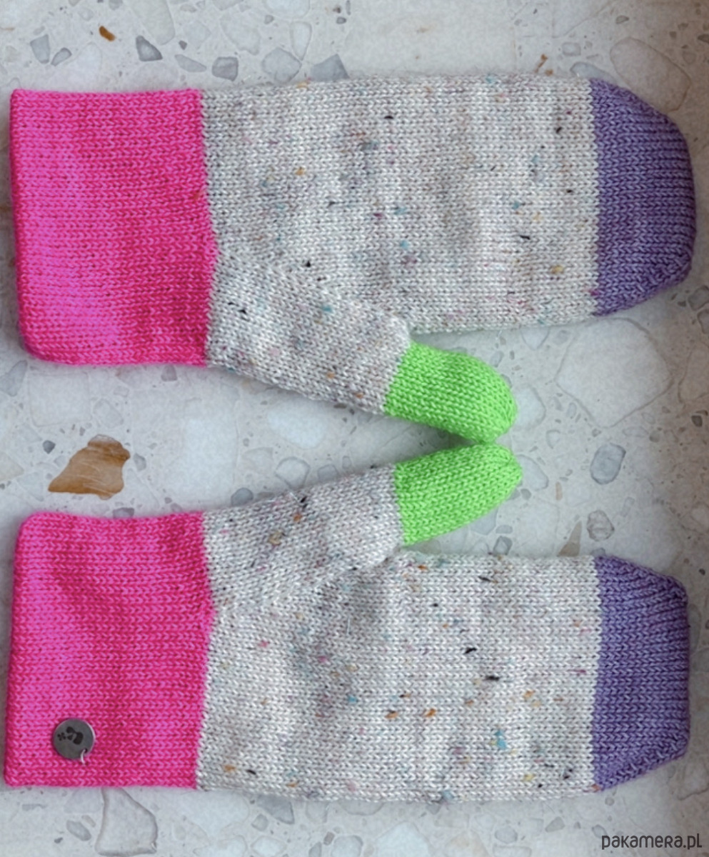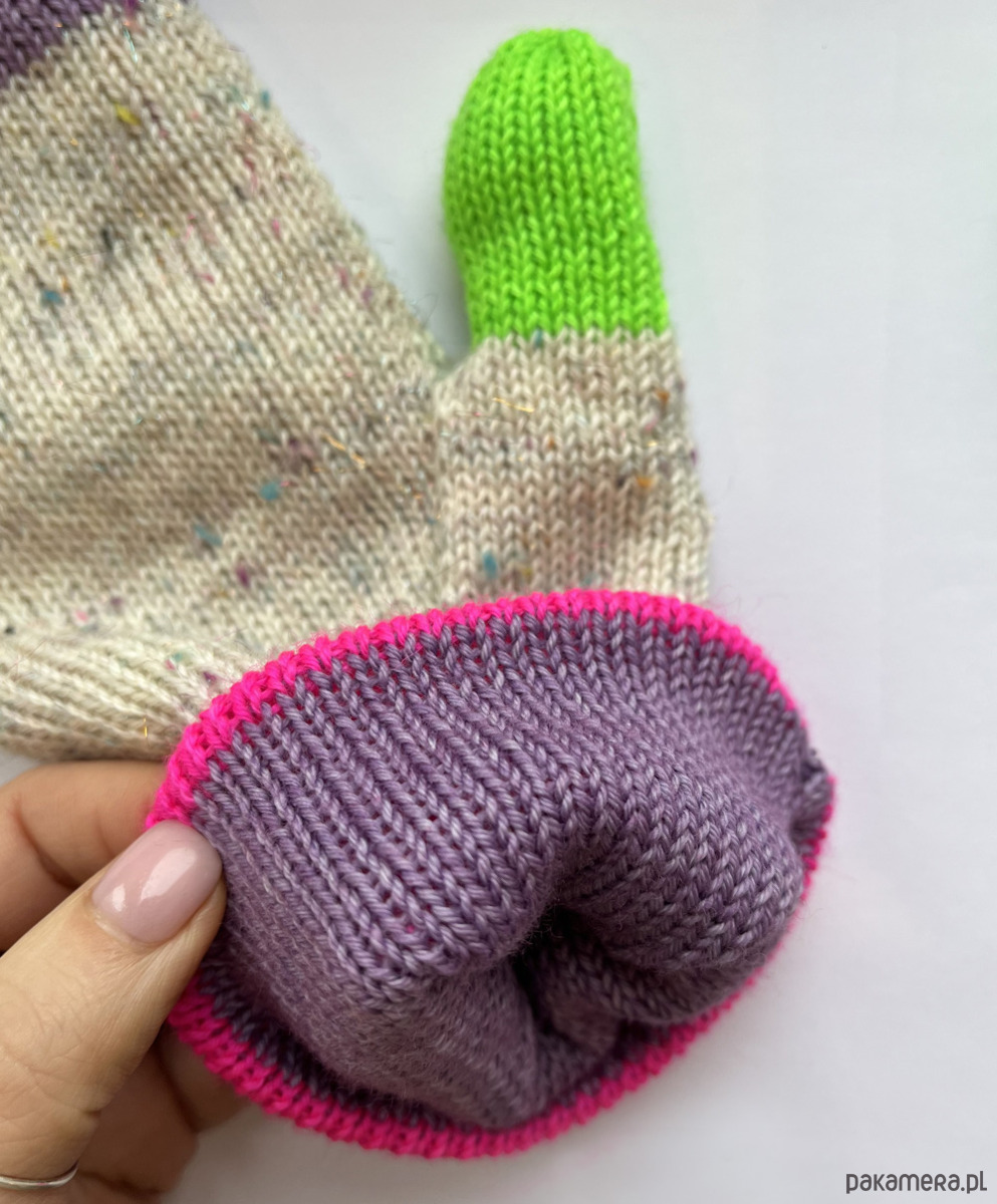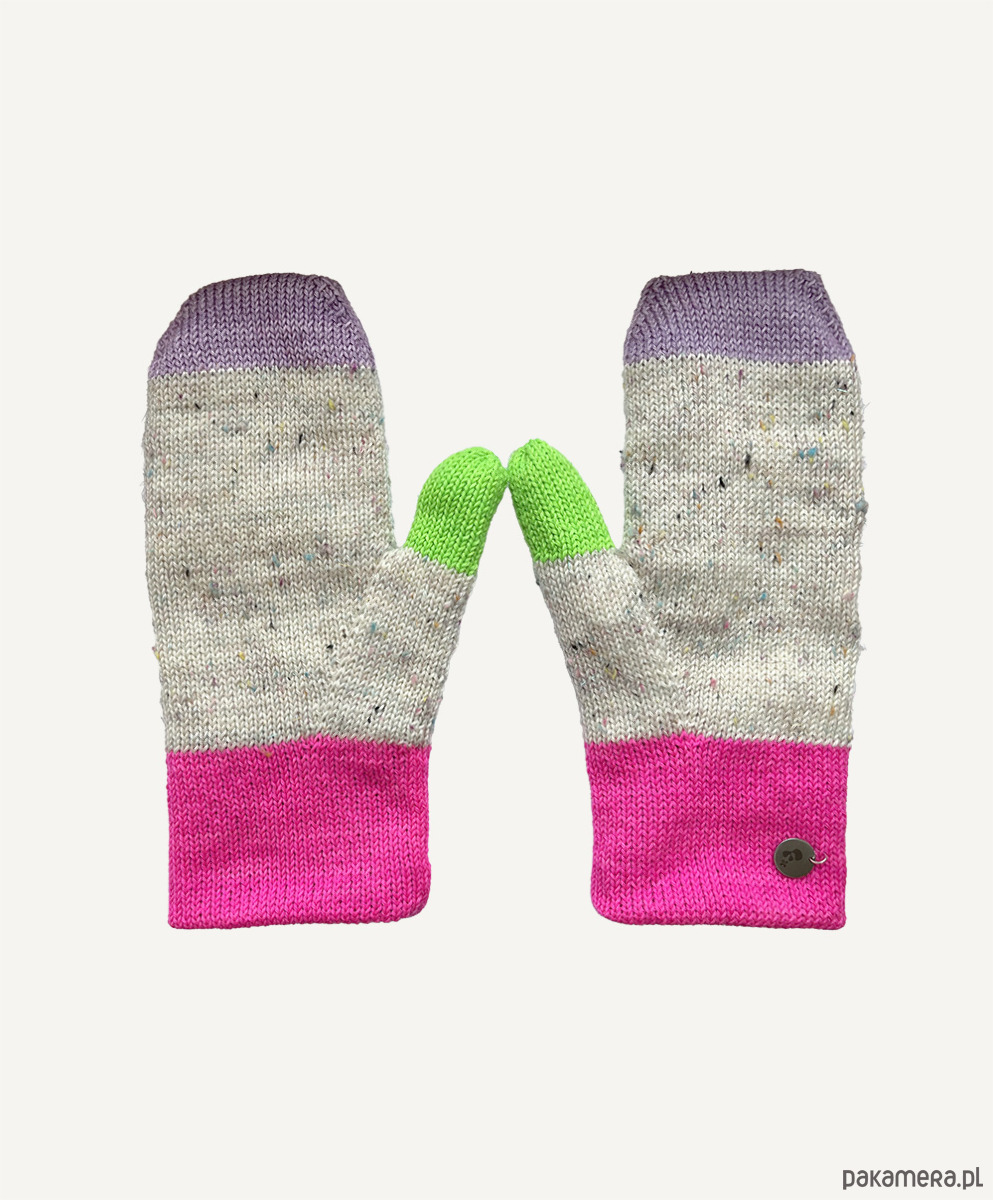 Kolorystyka to świadomy zabieg projektowy: energetyczny neonowy róż na mankiecie, soczysty zielony kciuk i stonowany, lekko nakrapiany korpus w neutralnych tonach. Ten kontrast daje efekt świeży, nowoczesny i odważny — idealny dla osób, które lubią funkcjonalny design z charakterem. Mięciutkie w środku.