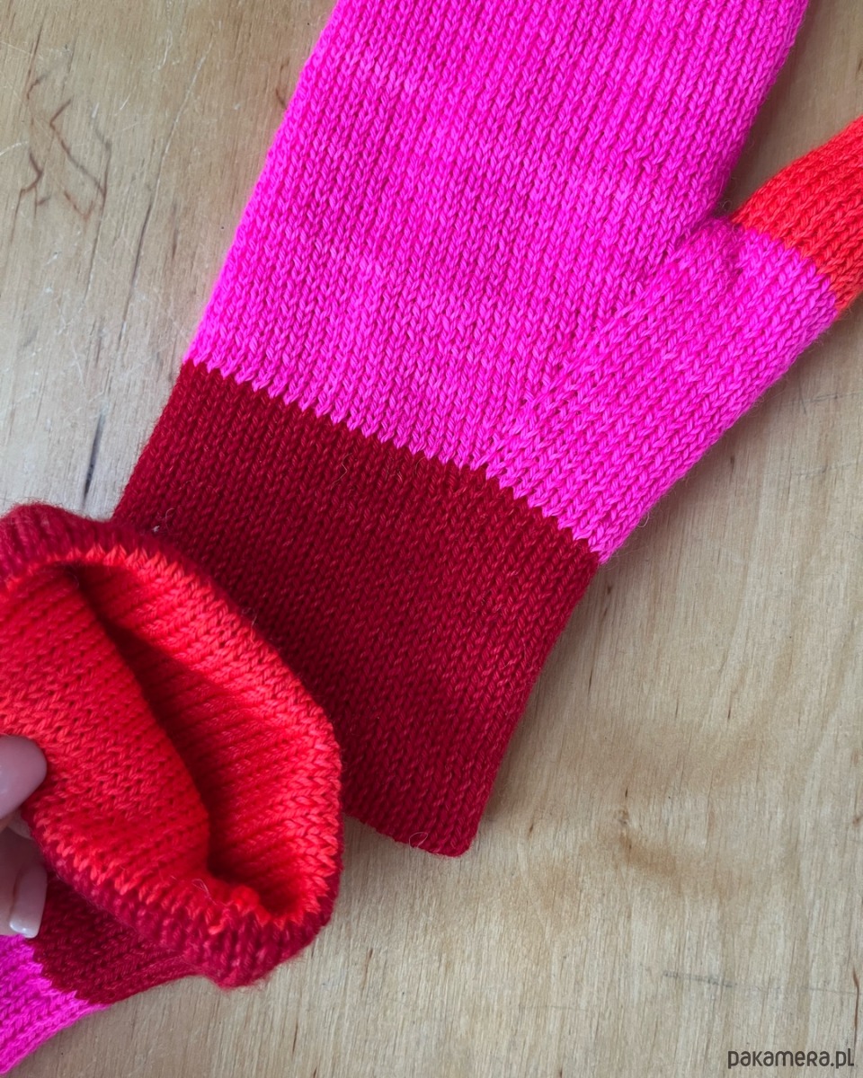 Kolorystyka to świadomy zabieg projektowy: energetyczny neonowy róż na mankiecie, soczysty zielony kciuk i stonowany, lekko nakrapiany korpus w neutralnych tonach. Ten kontrast daje efekt świeży, nowoczesny i odważny — idealny dla osób, które lubią funkcjonalny design z charakterem. Mięciutkie w środku.