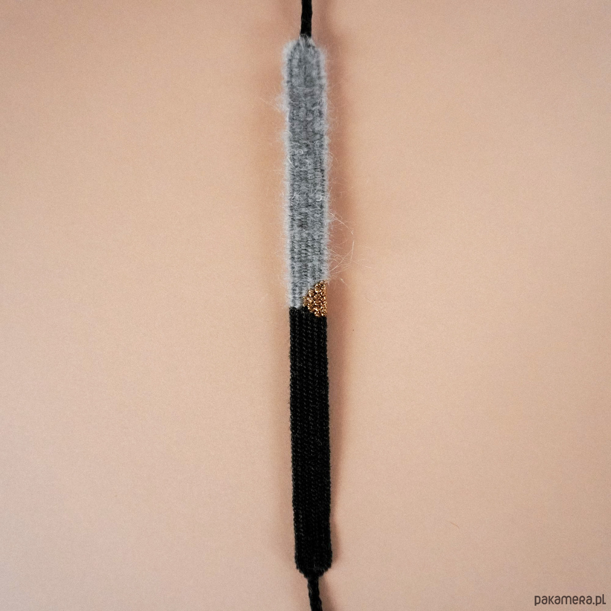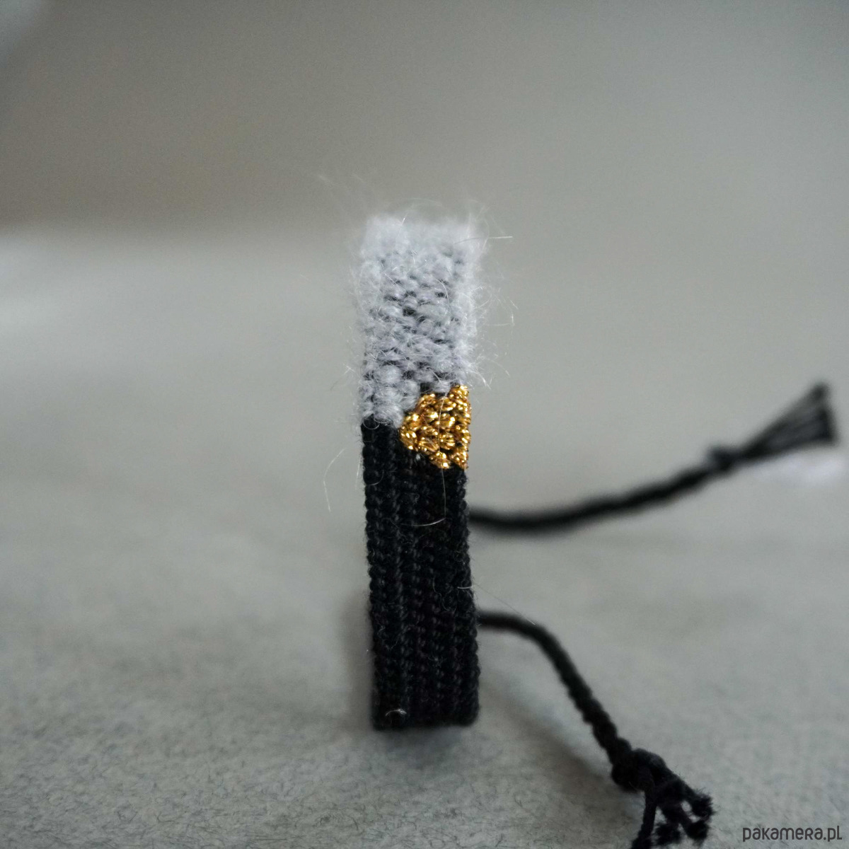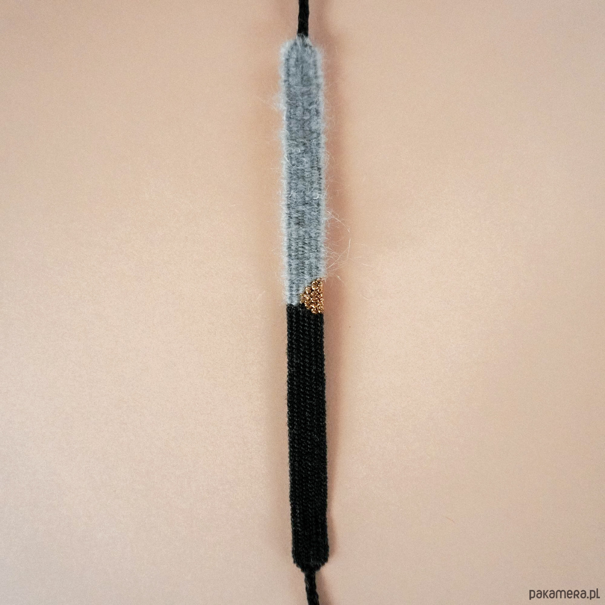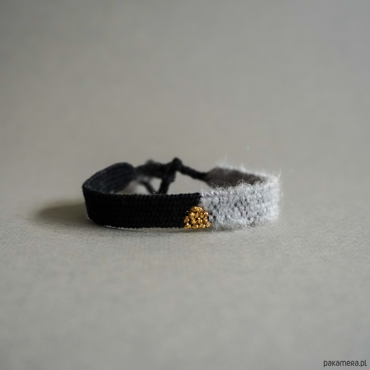Wąska bransoletka ręcznie robiona z nici, czerń z szarością