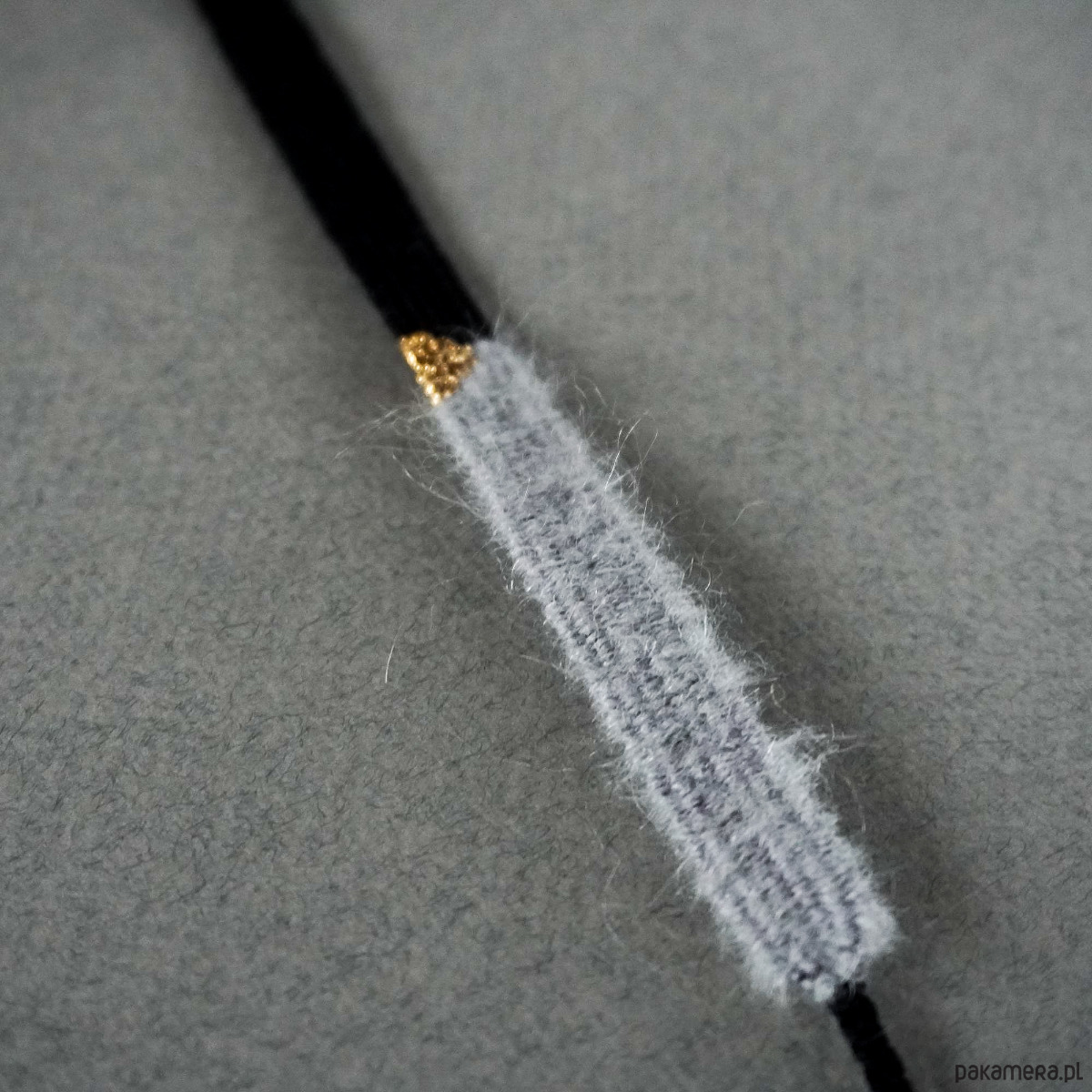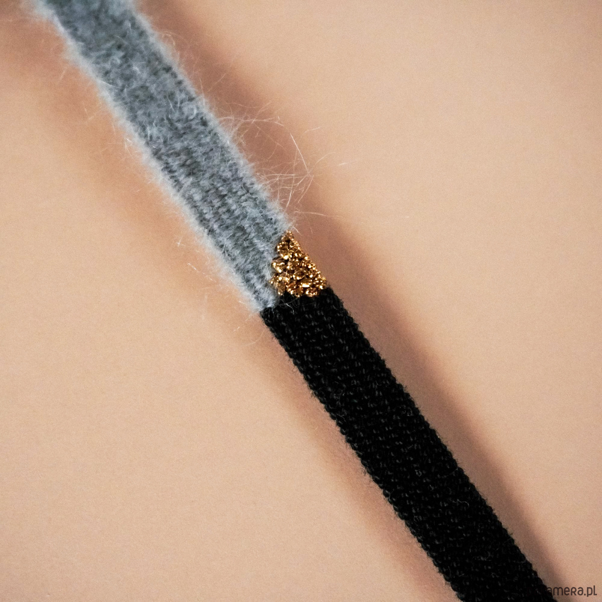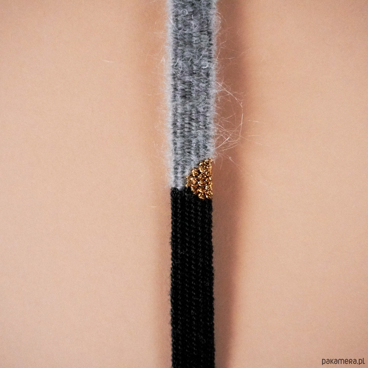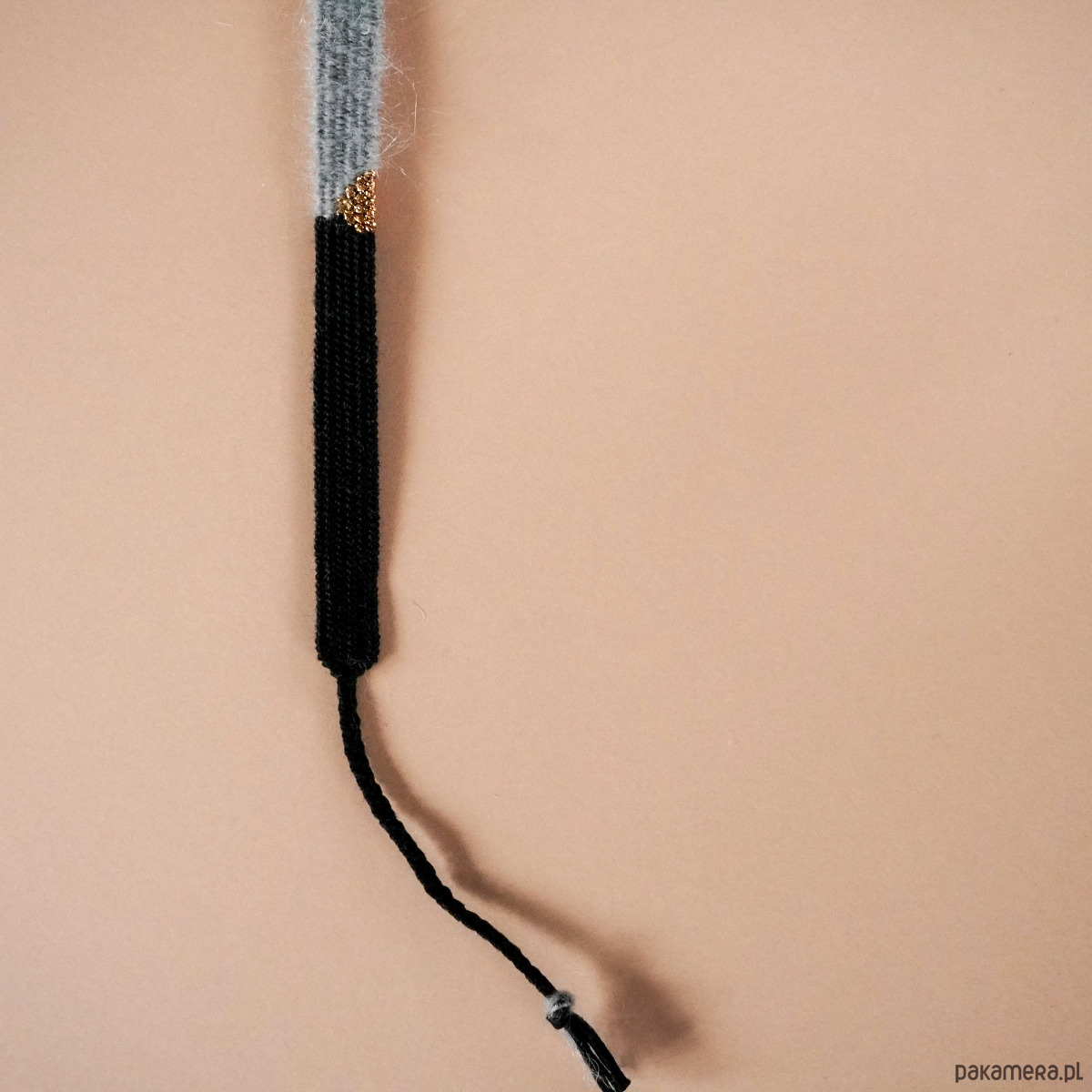 Wąska bransoletka ręcznie robiona z nici, czerń z szarością
