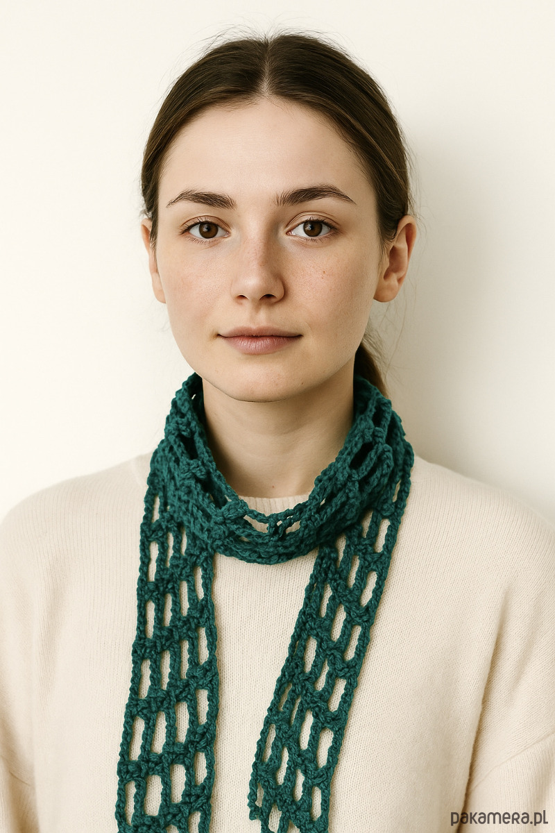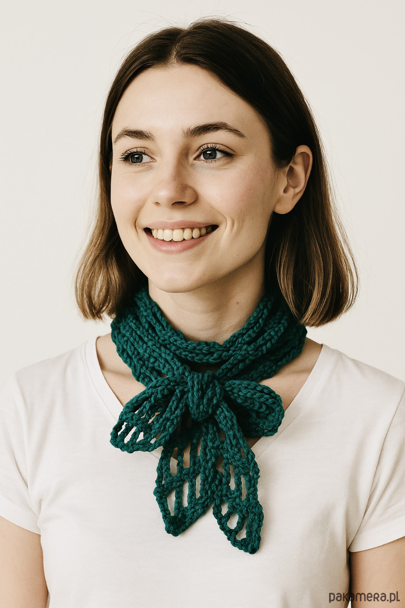 Wąski ażurowy szalik naszyjnik ozdoba na szyję szmaragdowy