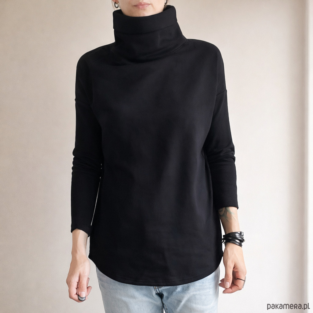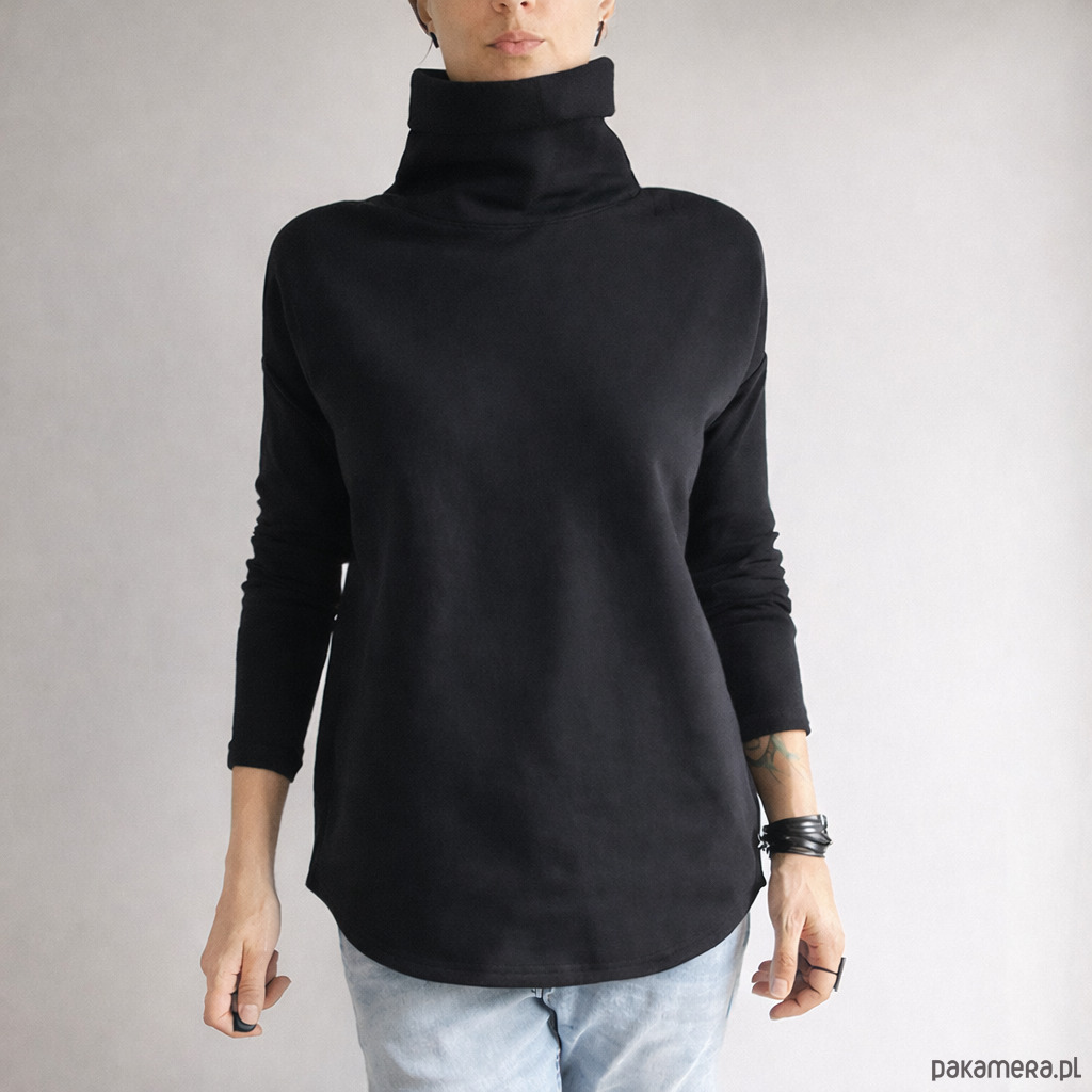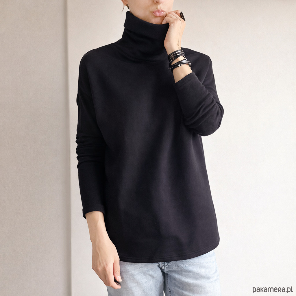 Nasz klasyk w wersji z golfem. Gruba dresówka, długie wąskie rękawy, podwójna warstwa golfu.