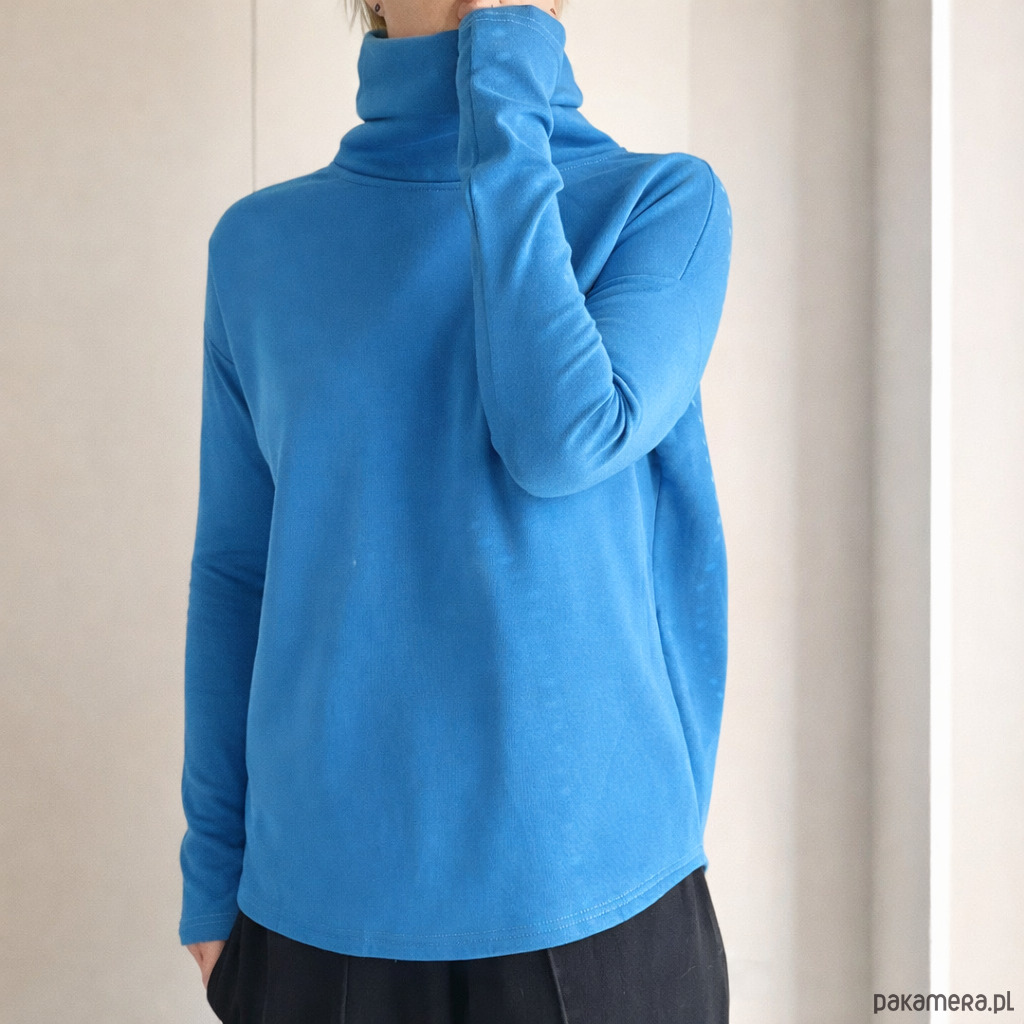 Nasz klasyk w wersji z golfem. Gruba dresówka, długie wąskie rękawy, podwójna warstwa golfu.