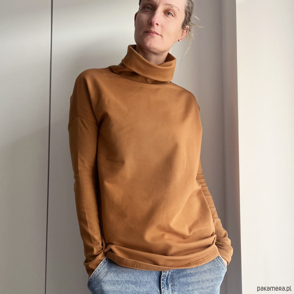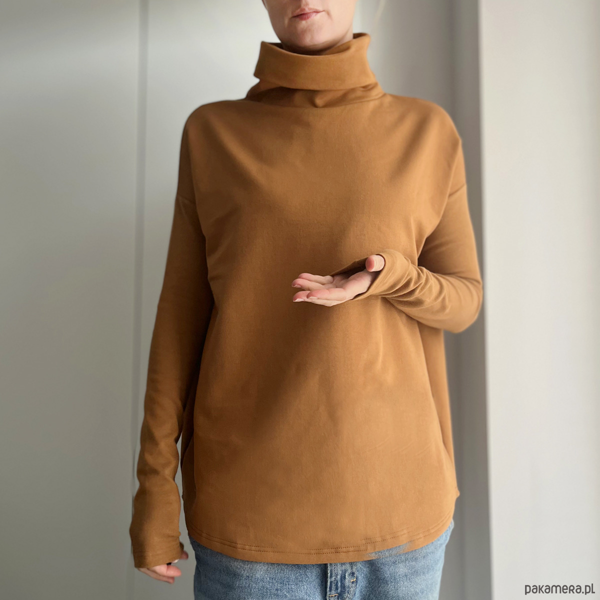 Nasz wąski rękaw w wersji z golfem. Gruba dresówka, długie wąskie rękawy, podwójna warstwa golfu.