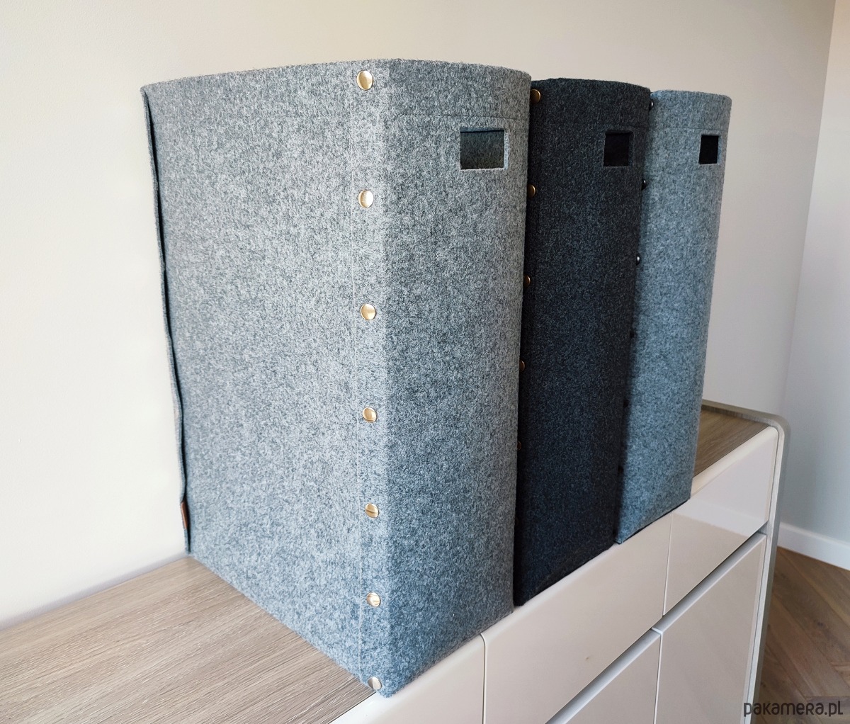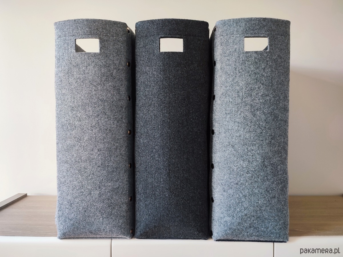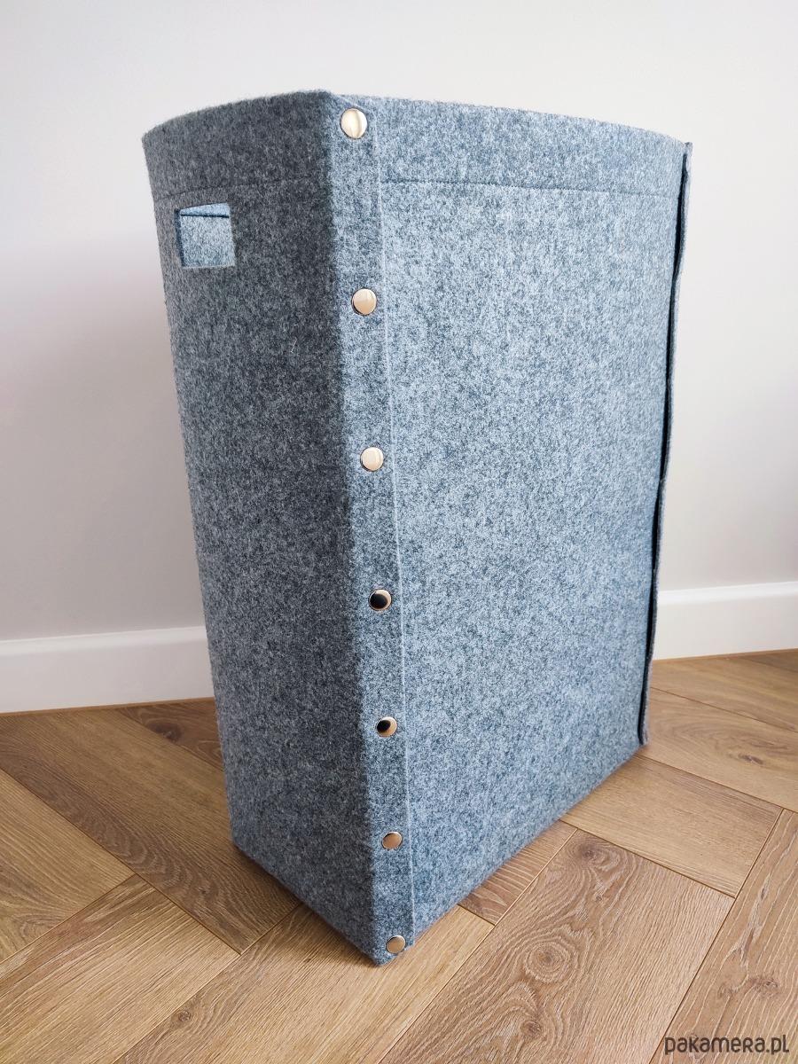 Pudełko zostało wykonane z grubego, mocnego filcu.