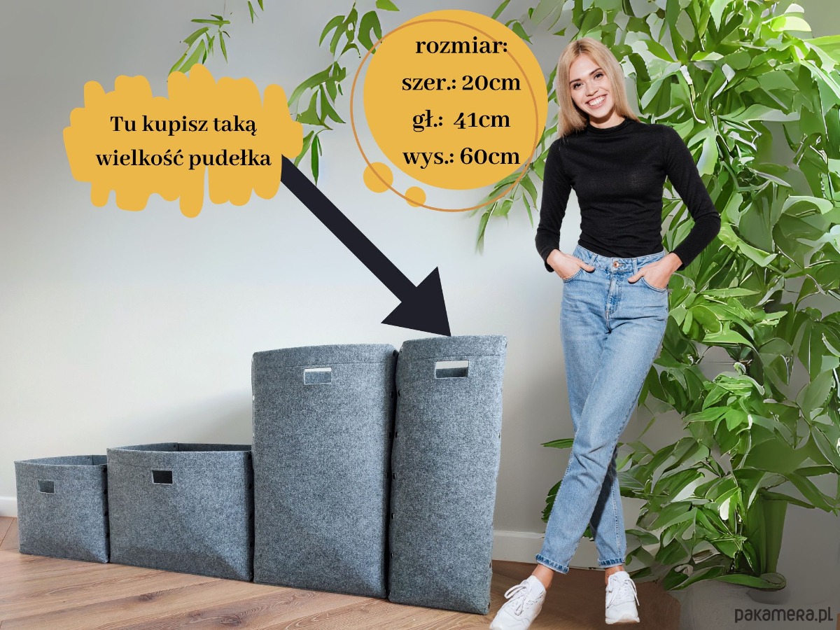 Wymiary pudełka: szerokość 20 cm, głębokość 41cm, wysokość 60 cm.